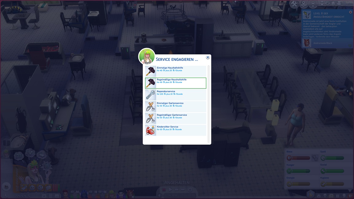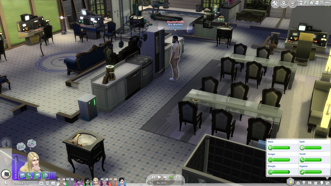 Da sich einige Besatzungsmitglieder über Sauberkeit beschweren, deren Ursache ich nicht erkennen kann, und um eine weitere Funktion zu testen, stelle ich einmal eine Putzhilfe ein. Sie erscheint allerdings erst am nächsten Montag.