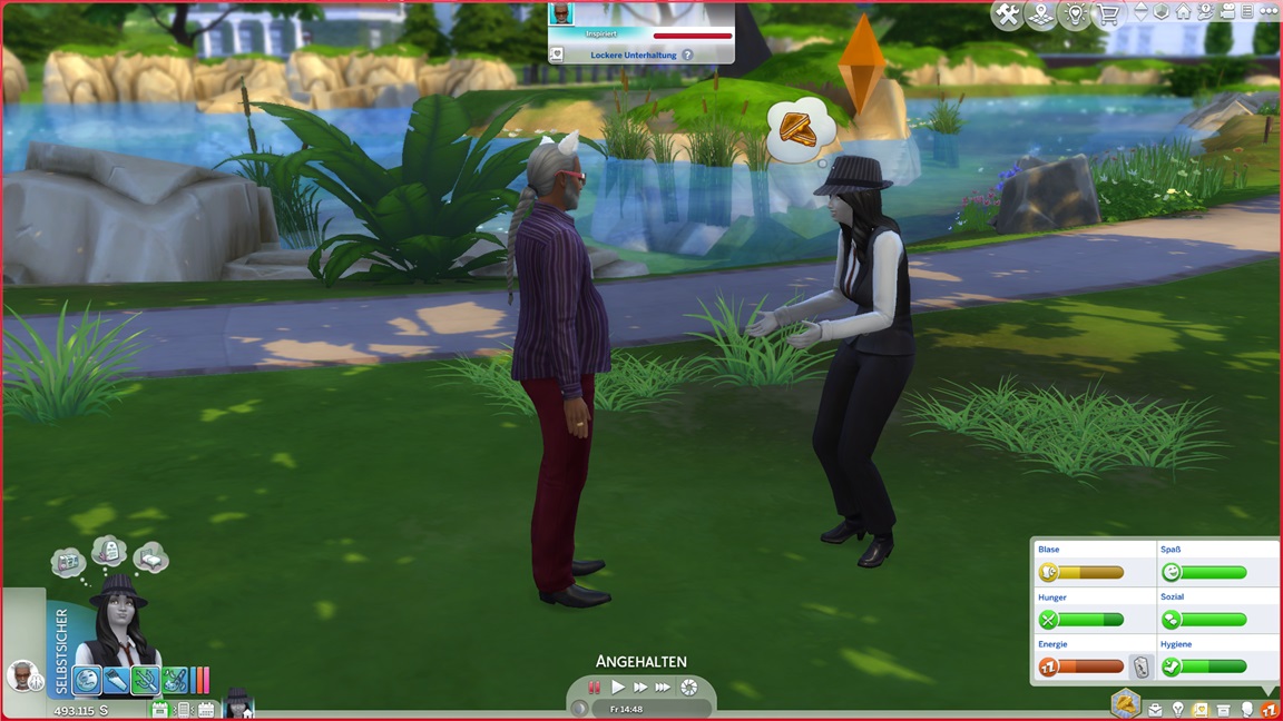 Nadine benötigt für die Arbeitsfortschritte romantische Interaktionen, und da die Versuche mit Lisa und Andromeda so krachend scheiterten, ruft sie sich meist ihre Gattin dafür herbei - oder findet sie hier beim Angeln.