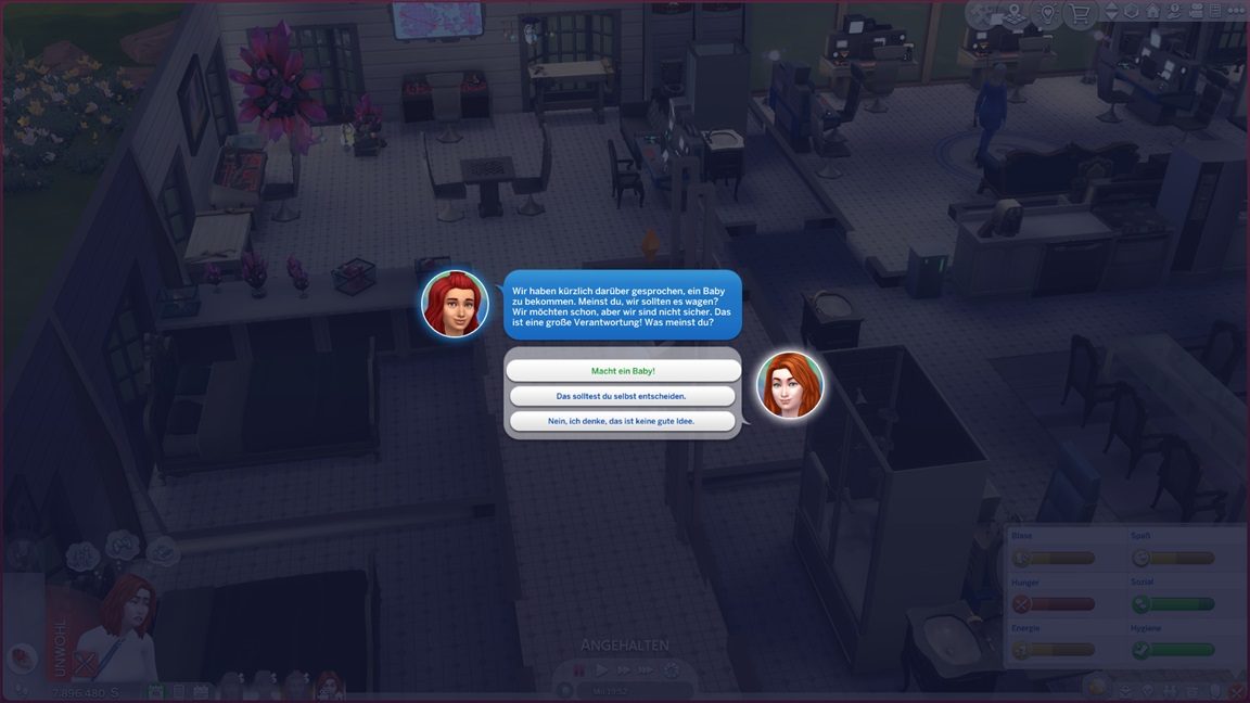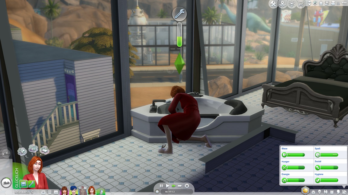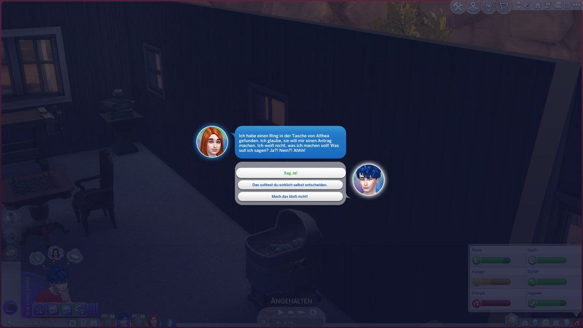 Mit dem Patch, der den Romantik-DLC begleitete (den ich natürlich überging), kamen zwei Optionen für die zufällige Weltveränderung hinzu: Sims können auf Wunsch des Würfels Freundschaften und Beziehungen eingehen. Ich aktiviere es für sämtliche meiner Haushalte, die mit einem Todesrisiko leben.