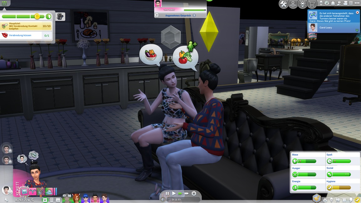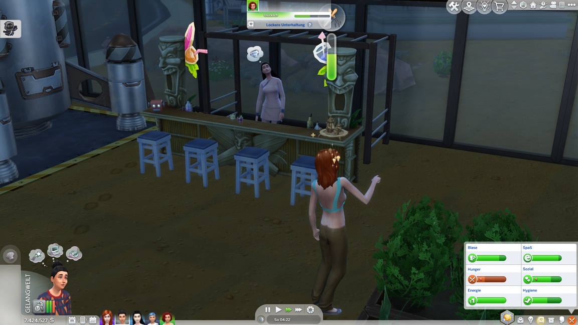 Amy stellt fest, dass sie Mixen mag. Sie erhält eine kleine zweite Bar, um in der passenden Umgebung diese Fertigkeit pumpen zu können.