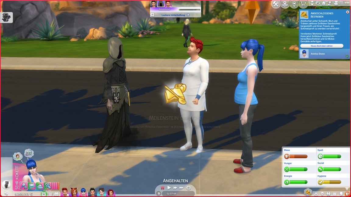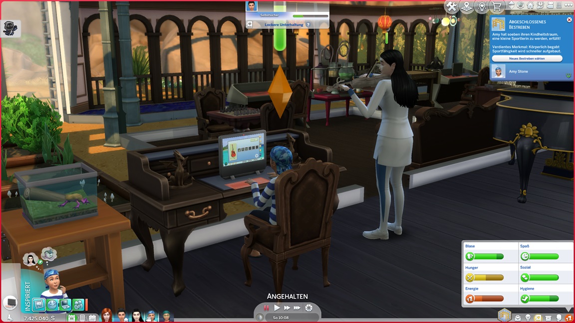 Die Kontakte bekommen sie alleine hin und selbst zum Sport lässt er sich bitten, doch dann scheitert es an meinem Mangel an möglichen Befehlen. Sie erreichen nur Bronze, was Lure irgendwie trotzdem einen Tick nach oben bei den benötigten Silber-Verabredungen verschafft.