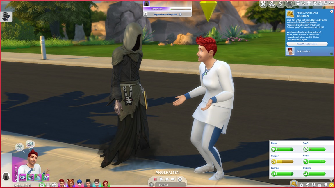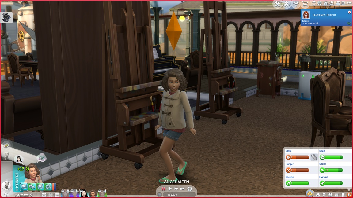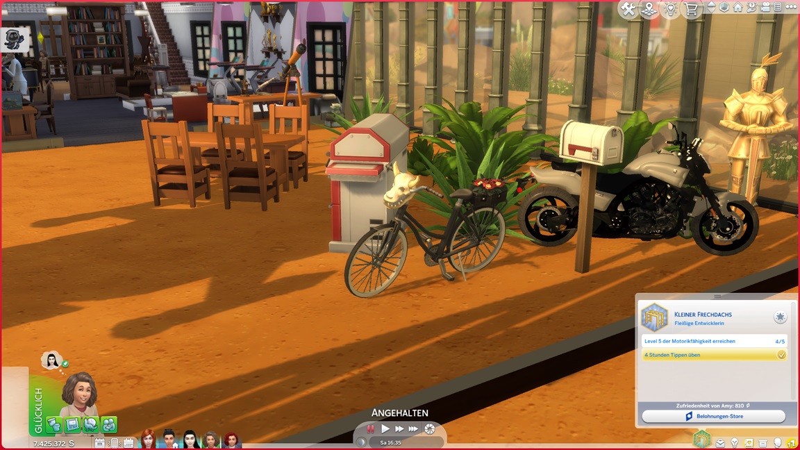 In der Heimat tritt das Unglück ein: Als das Spiel an irgendwas hakt, beende ich es und lasse damit den Vorhang fallen, ohne die letzten Schritte noch zu absolvieren: Nikodema steht kurz vor dem Kuchen, Amy nur leicht dahinter. Jack stellte fest, dass ihm noch Fertigkeiten fehlen, und pumpte an diesen. Marian sollte bald über ihren Garten jubeln können, Carol fehlten noch sämtliche Meisterwerke... aber die Schnitter-Episode ist vorbei, und alles, was noch fehlt, kann in die nächste Episode mitgenommen werden.