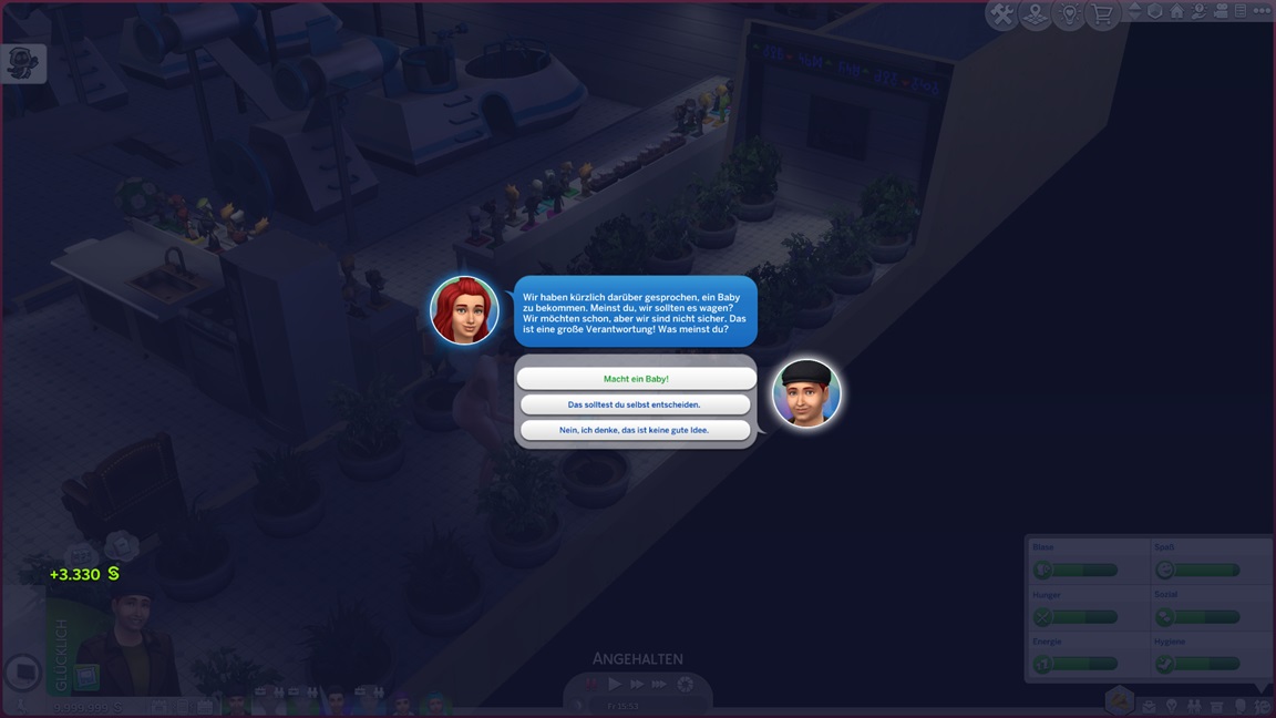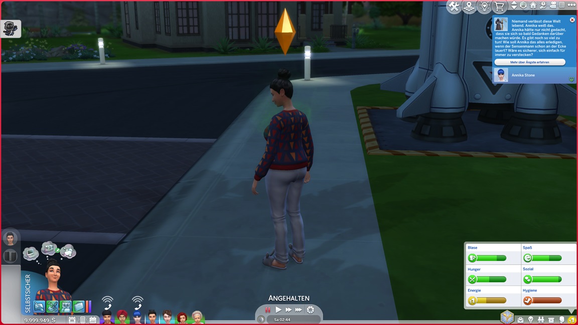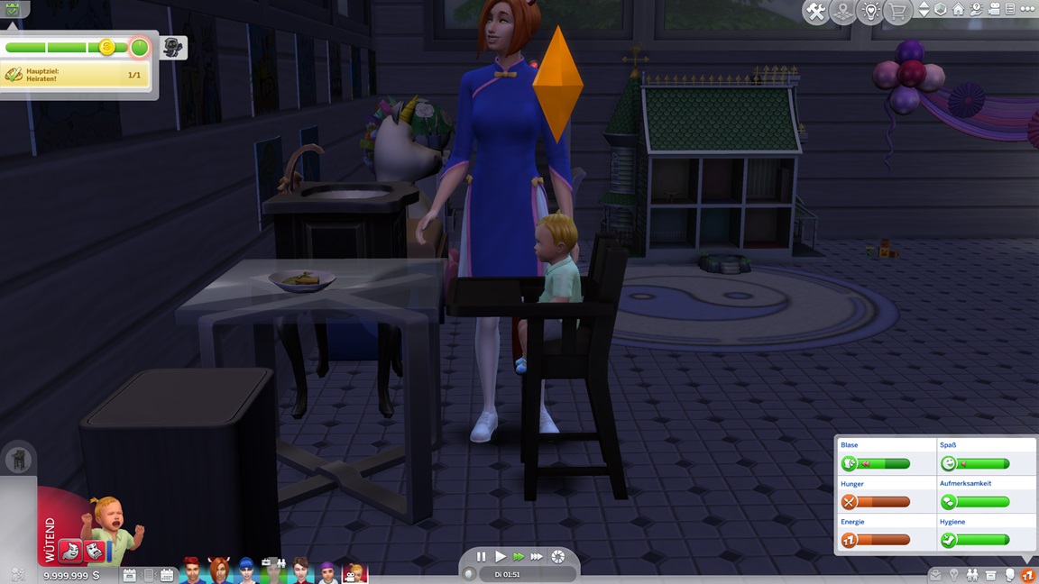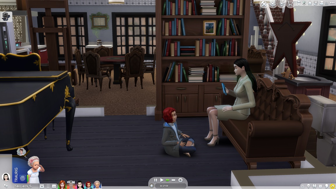 Ich benannte "Jana" in "Jenna" um - und nahm schon einmal vorläufig Jack heraus, um dem Haushalt genügend Platz für achievementwürdige Drillinge zu geben. Er soll danach allerdings zurückkehren, da ich es als Merkmal dieser Episoden ansehe, auf Wechsel möglichst zu verzichten.
