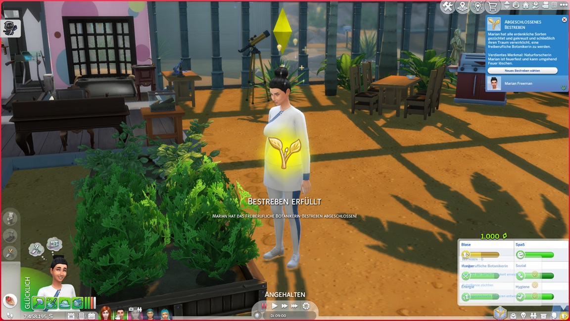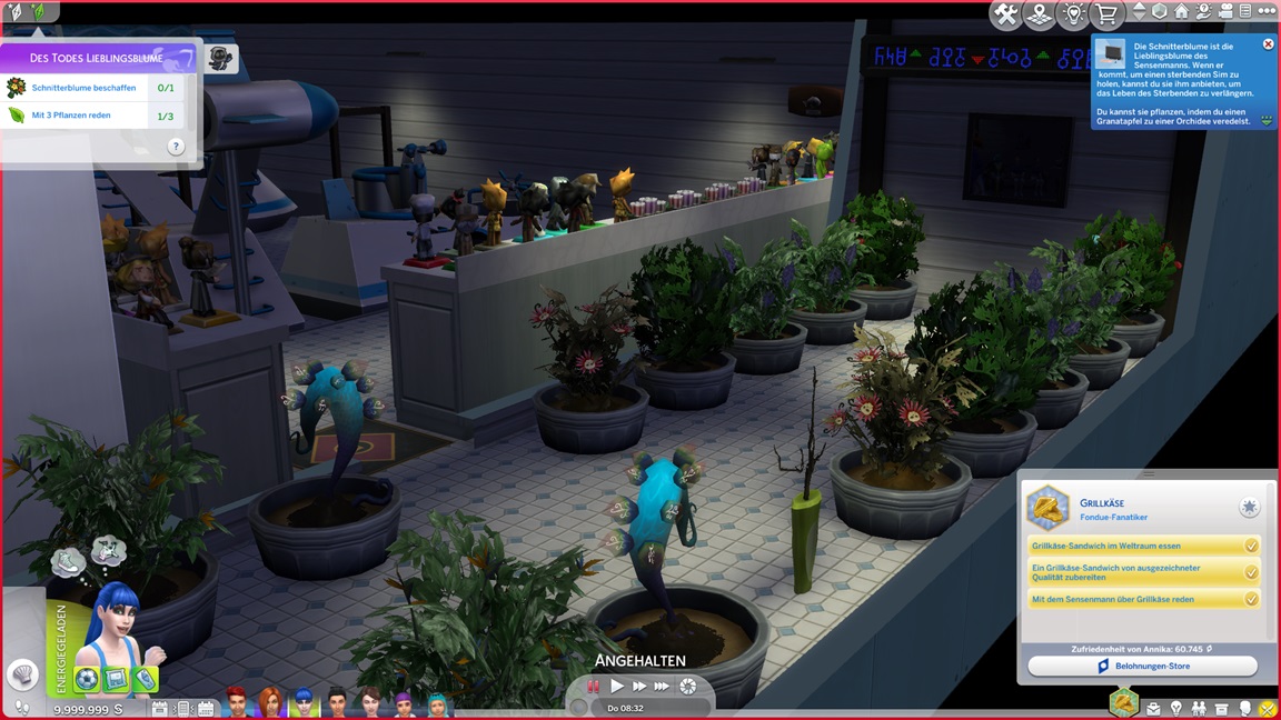 Bei der täglichen Gartenarbeit stoße ich eher zufällig auf einen Trick: Natürlich zählen geerntete statt verkaufte Pflanzen als Sammelgegenstände, und da die Knospen einzeln zählen, kommt eine Menge zusammen. Jenna erledigt ihren Pflichtteil allein durch das Beet und muss nun Marian darum bitten, für sie im All nach Kometen zu suchen, da ihre Schwangerschaft ihr dies verbietet.