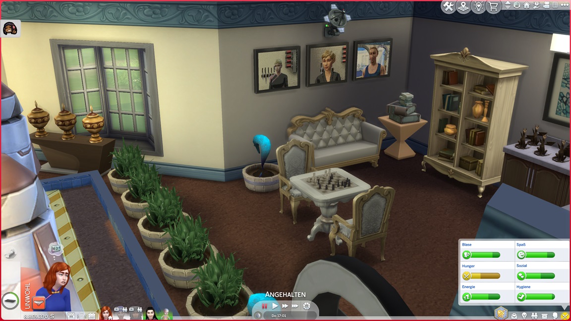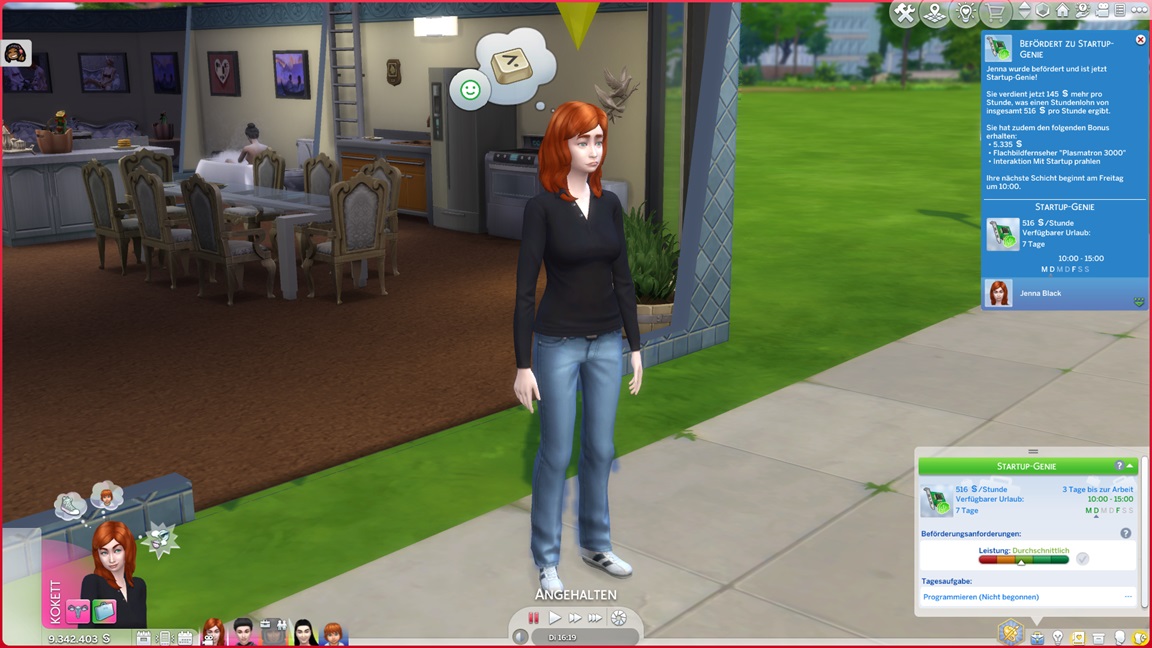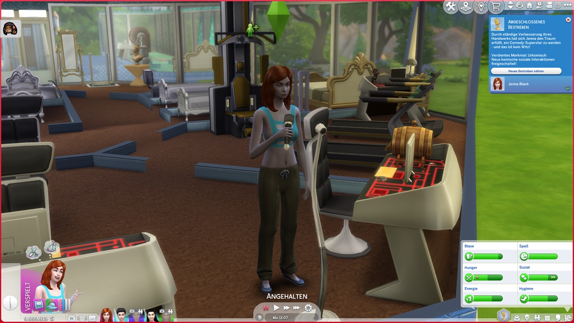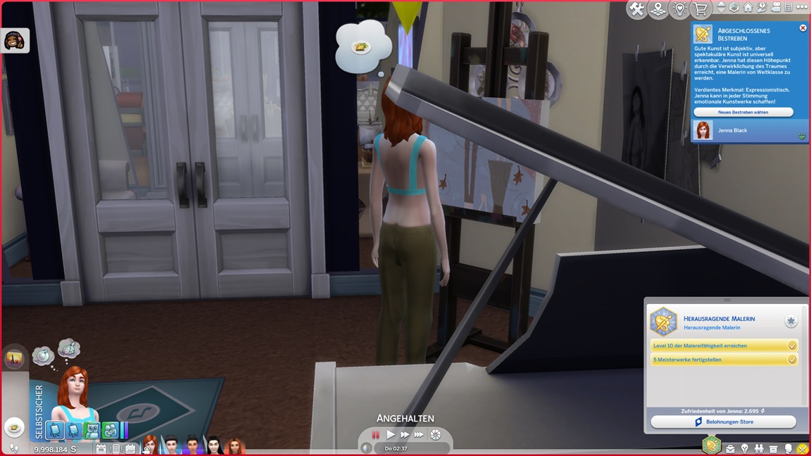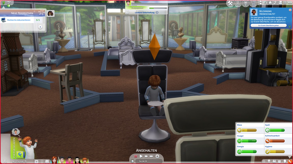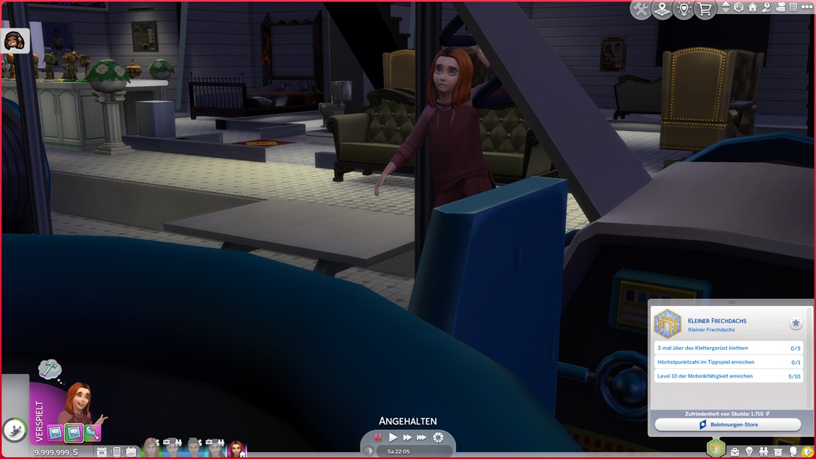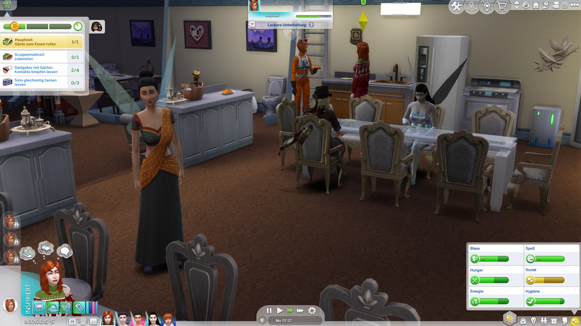 Die neue Woche bringt an. Die eine Queste verlangt (nach dem Erhalt des Newsletters) nach der Herstellung von Ambrosia, die andere nach einer Feier. Ein Bug sorgt derweil dafür, dass Sims sichtbar bleiben, die eigentlich auf Arbeit oder in der Schule weilen.