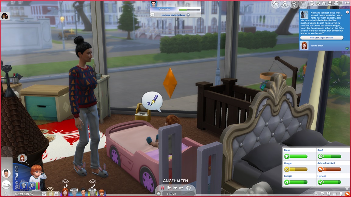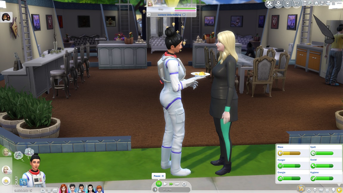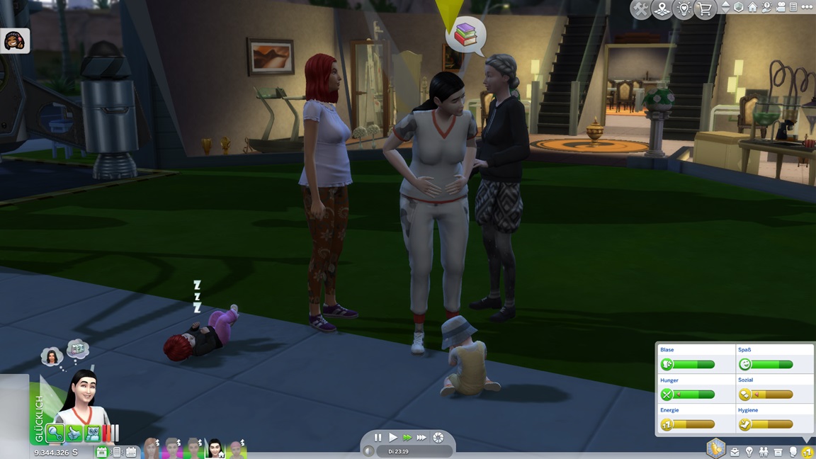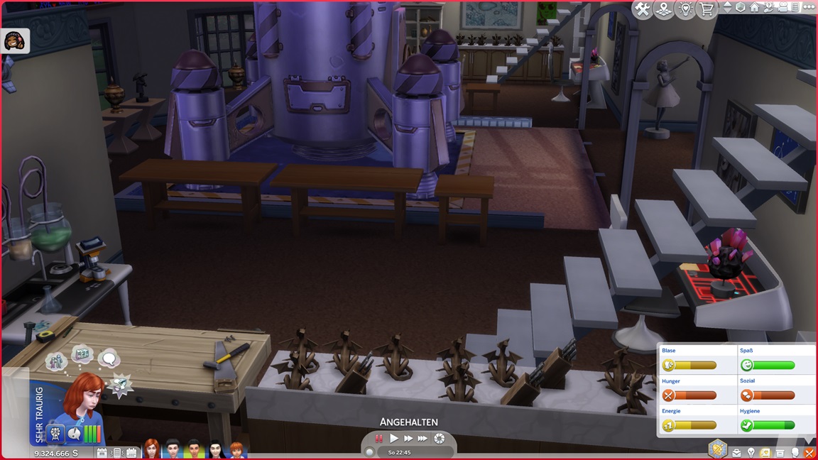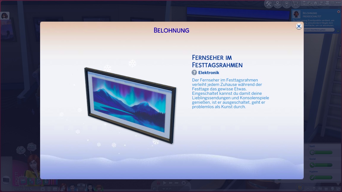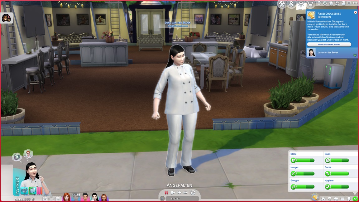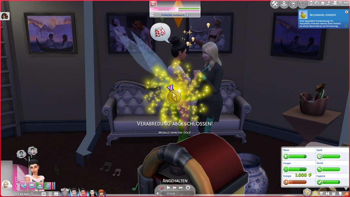 Die neue Woche bringt an. Die eine Queste verlangt (nach dem Erhalt des Newsletters) nach der Herstellung von Ambrosia, die andere nach einer Feier. Ein Bug sorgt derweil dafür, dass Sims sichtbar bleiben, die eigentlich auf Arbeit oder in der Schule weilen.