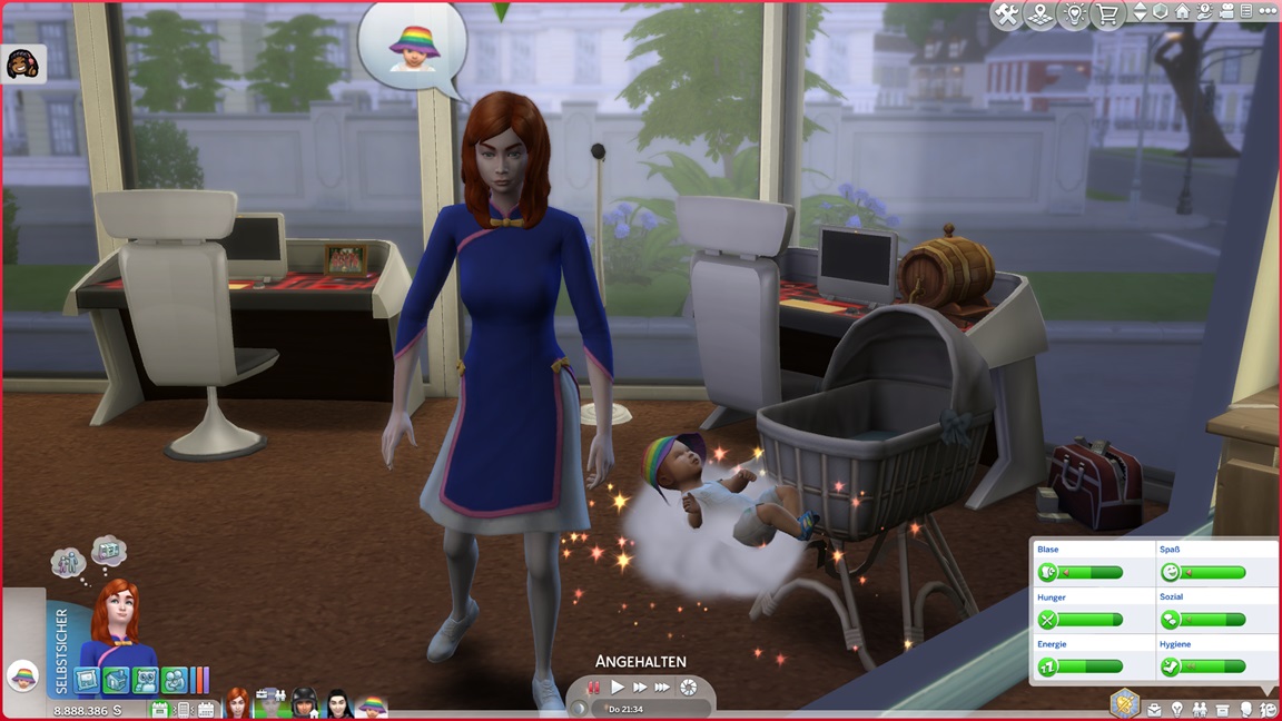 Ich spiele den alten Haushalt noch einige Stunden vor, um die Geburt mitzunehmen. Das Drillings-Achievement bleibt erneut aus, dafür entsteht eine Tochter namens Skulda, die ihrer Mutter auf die Erbprinz folgt.