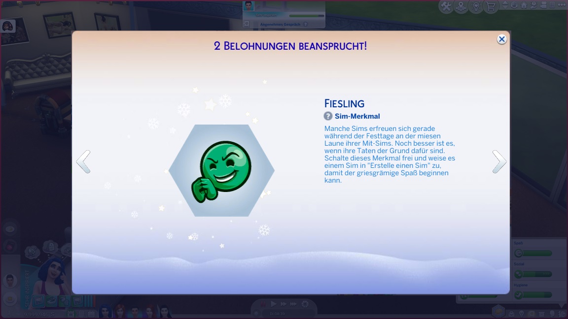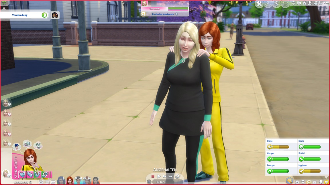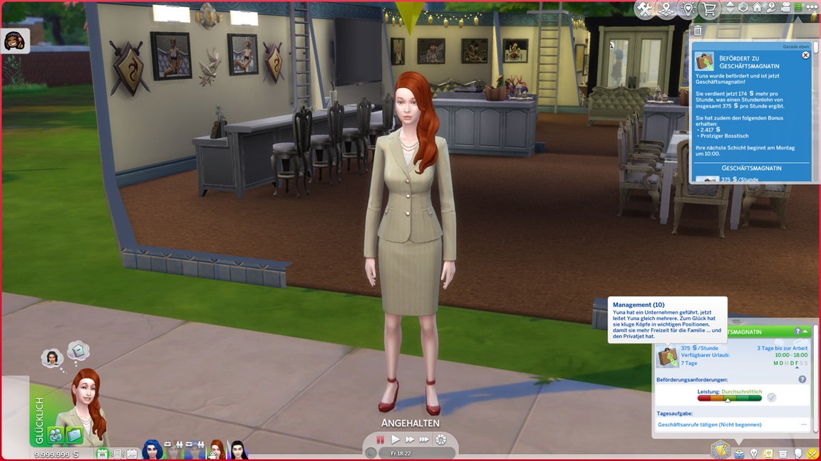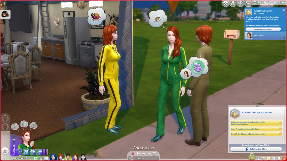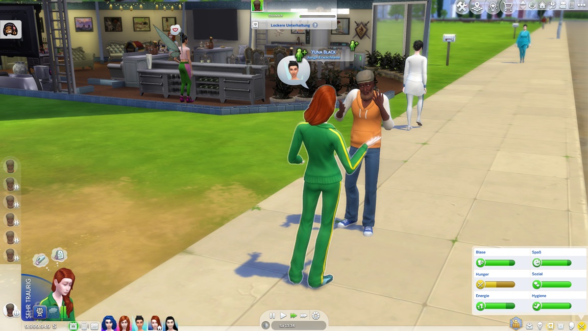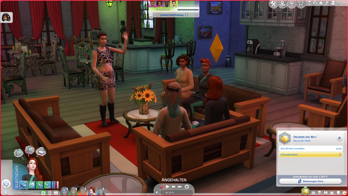 Carolin gibt die Seelenpartner-Suche auf und wechselt auf Renaissance-Sim. Yuna stellt fest, dass sie Fitness mag. Carolin kann nach einem Wechsel auf Entertainerei direkt jubeln.