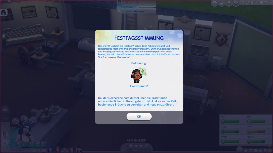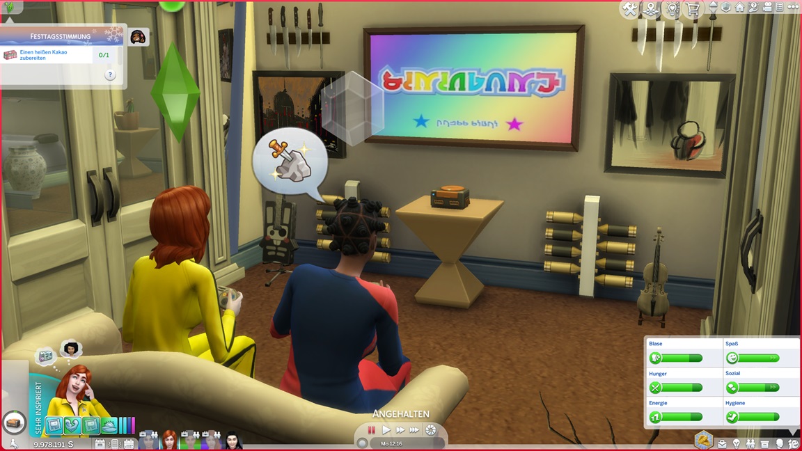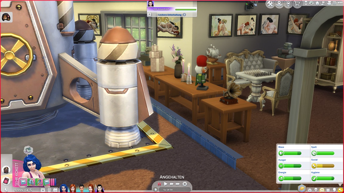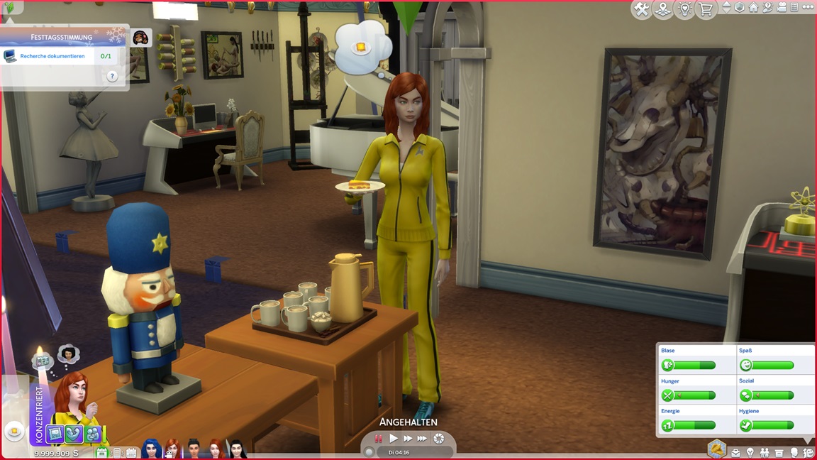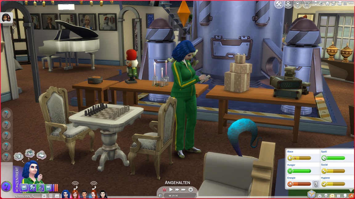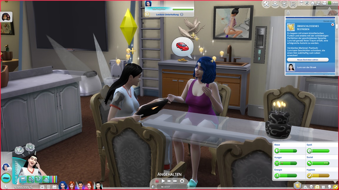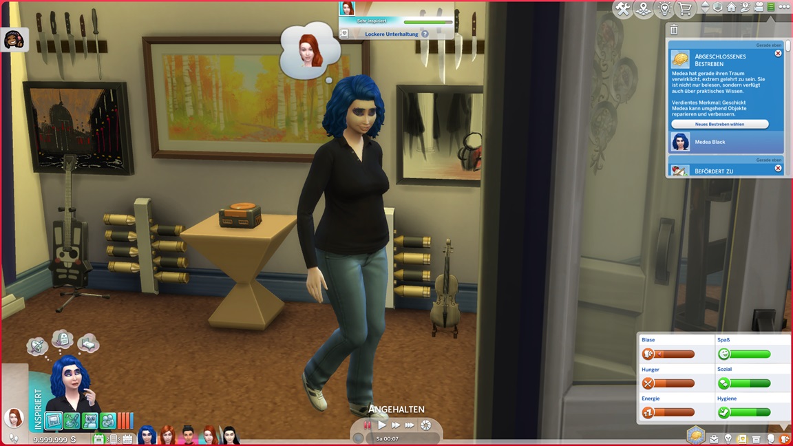 Der Wicked-Mod enthält nun eine erste Bestrebung aus dem Nudisten-Bereich, für die sich ein Haushalt mit Kind nicht wirklich anbietet. Celia wählt Malerei, Andrew schließt Renaissance ab und fährt mit Angelei fort. Neil-Kyle wählte bereits Kreativ. Da grüßt auch die Eventkette.