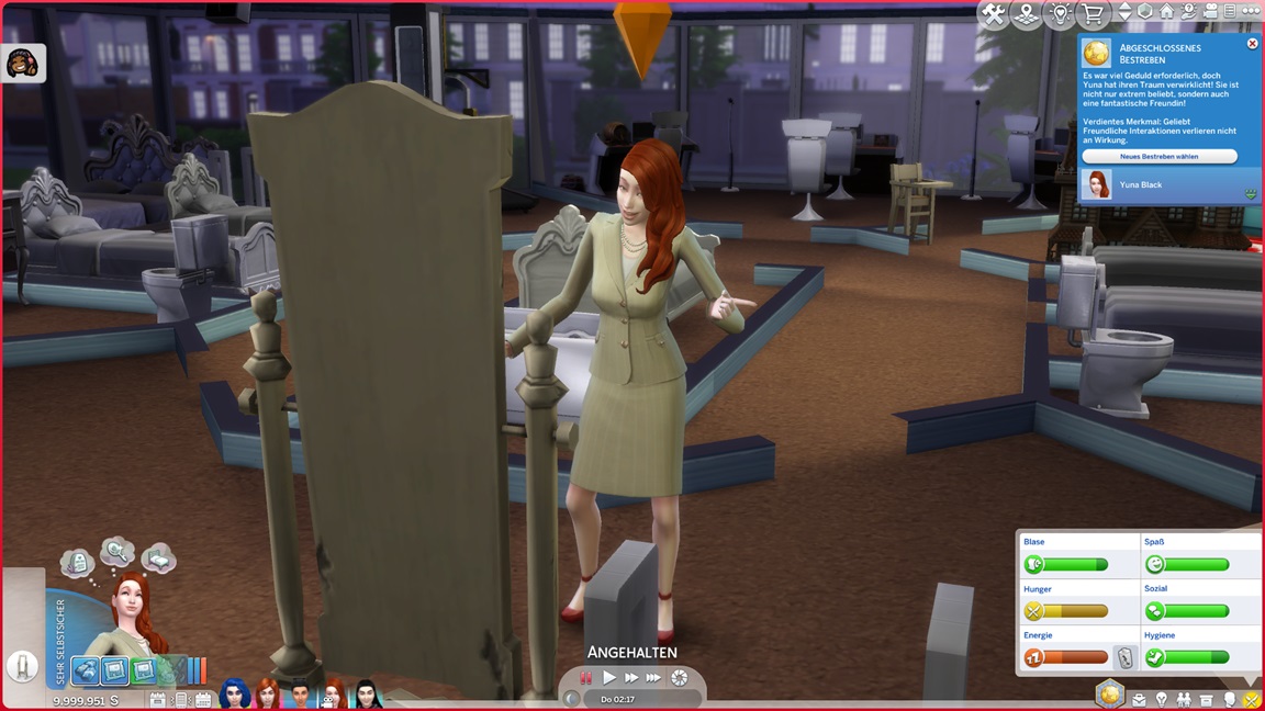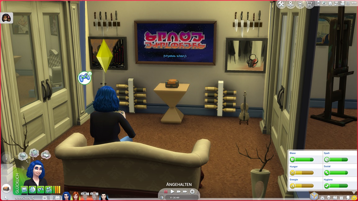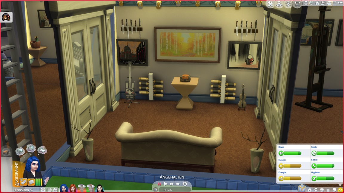 Das Trio begann mit 100.000 Credits, wovon bereits 45.000 für das Haus draufgingen. Im Geiste eines "Sims, wie man es plante" genügt das Geld nicht für alles, was man wünscht.