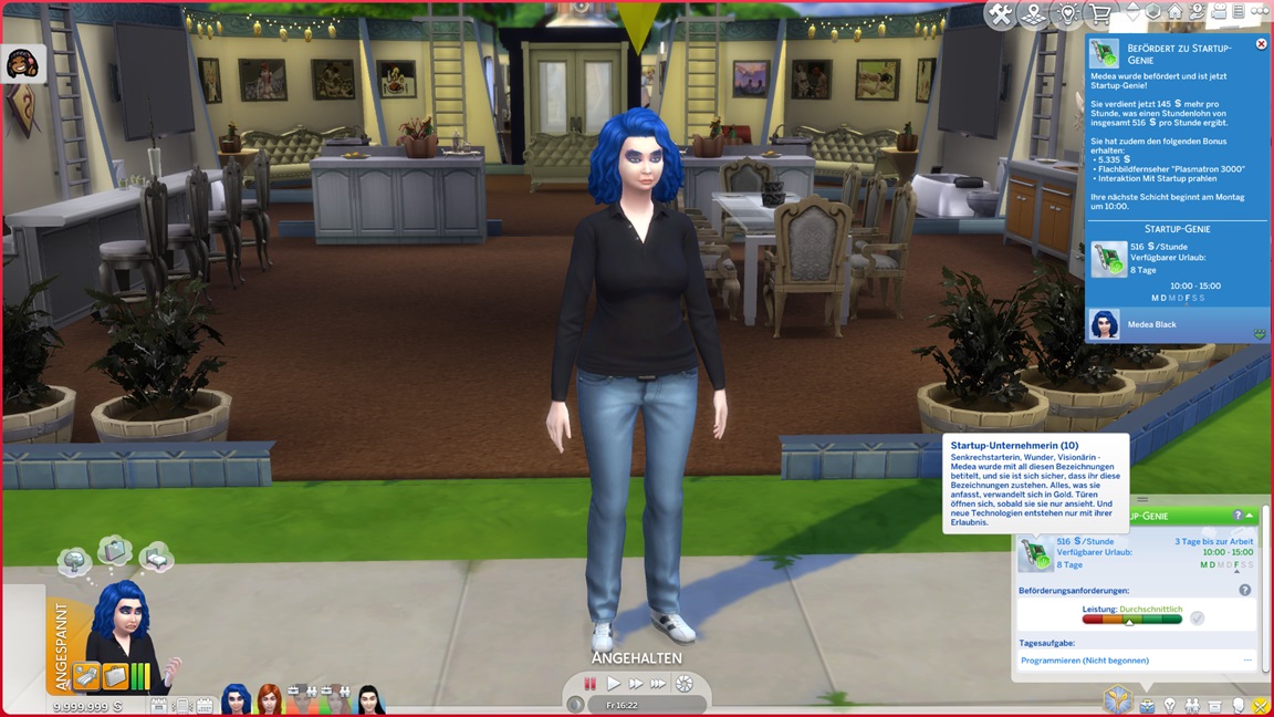 Andrew wechselt für die Konzentrationsgegenstände seine Karriere (er steckte irgendwo im Mittelfeld des Sportlers). Zunächst wählt er Tech-Guru, aber als er dort trotz Vorteil auf Stufe 1 beginnt, greift er lieber zum Astronauten. Nun genügt das Geld auch für einen Computer.