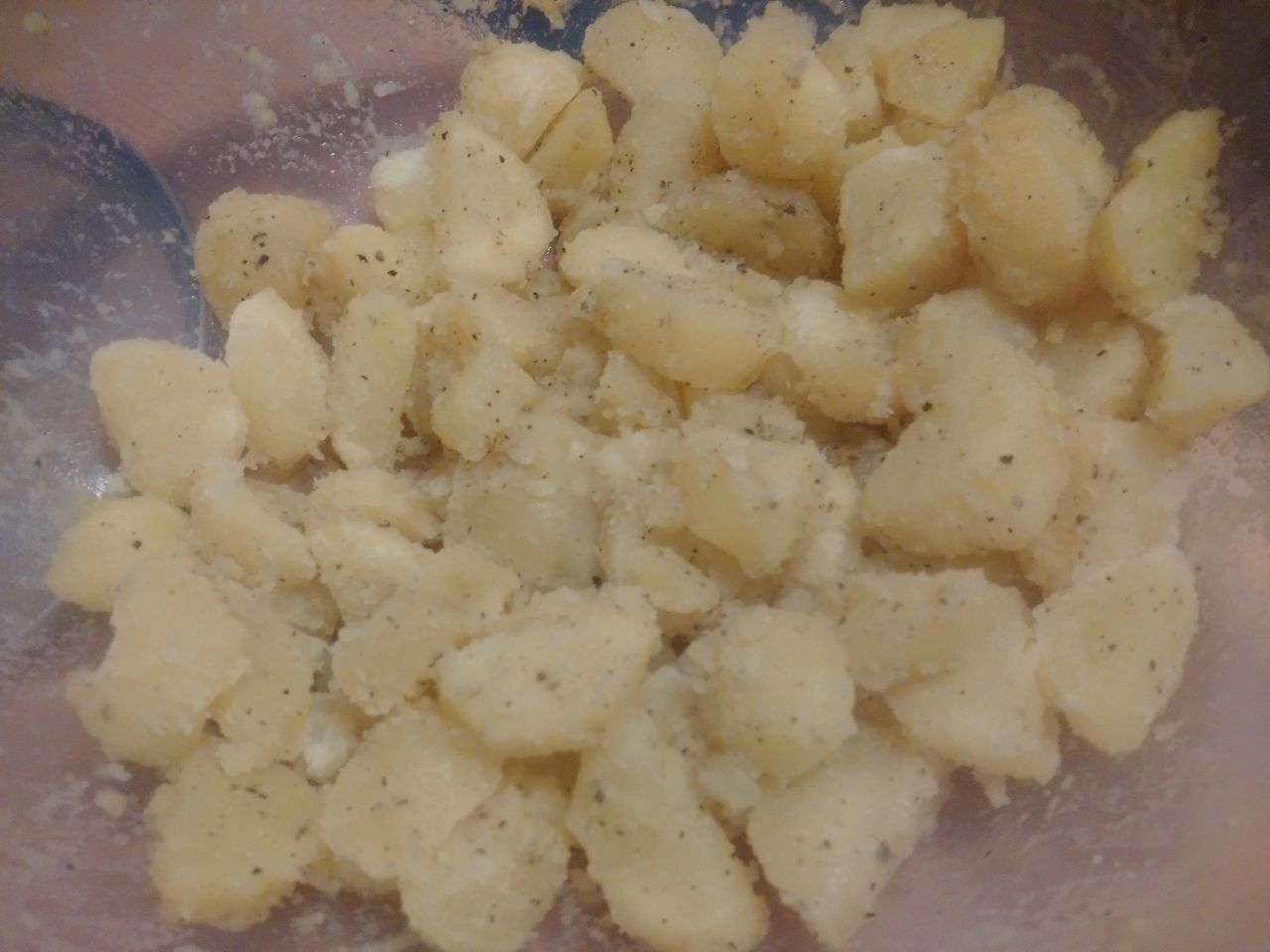 Der Clou bei den Kartoffeln ist es mehlig kochende zu nehmen und diese in Natronwasser zu kochen, dadurch entsteht eine poröse Stärkekruste.