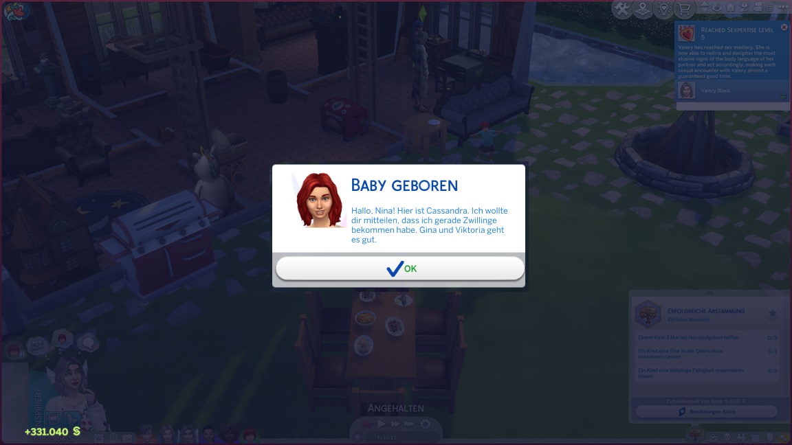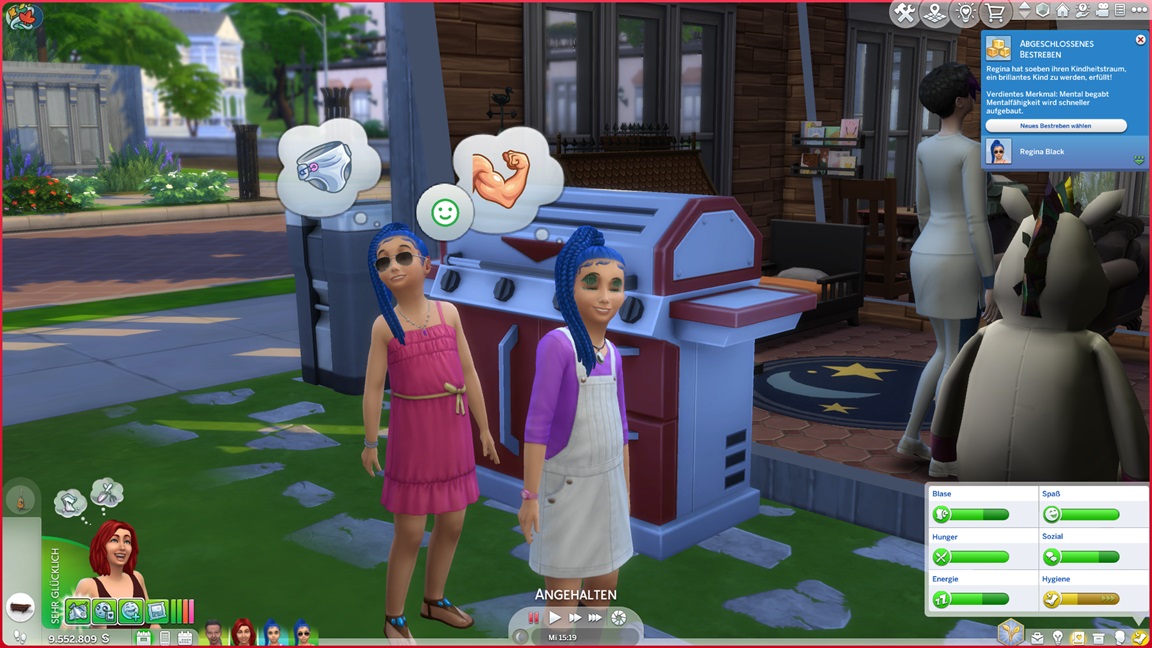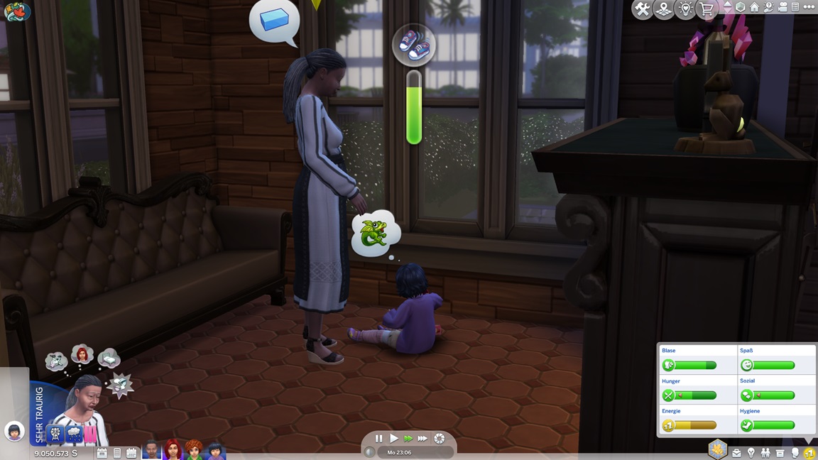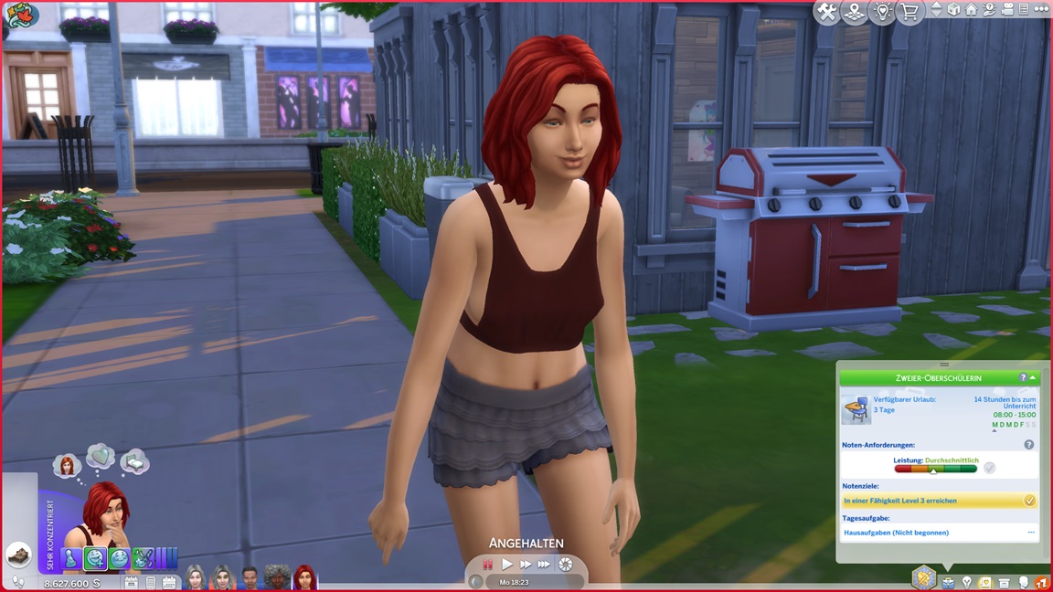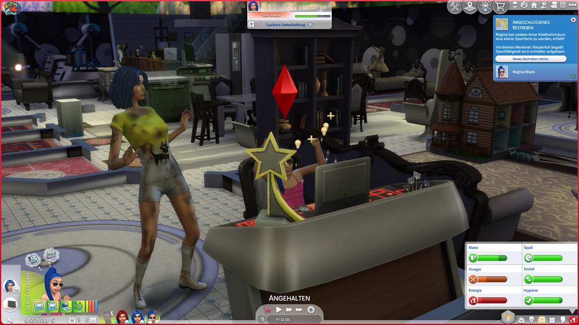 Ich stelle fest, dass ich mir in den Fuß schoss: Holger wächst noch während des Wochenendes, doch ich ließ ihn bereits seine Hausaufgaben absolvieren. Da werde ich per Konsole nachhelfen. Die Zwillingsschwestern tricksen derweil: Regina lebt ihre böse Seite aus, indem sie das Puppenhaus zerstört, woraufhin Victoria es wieder reparieren kann.