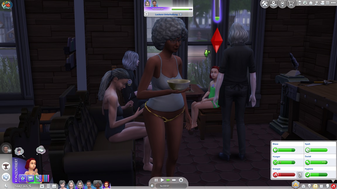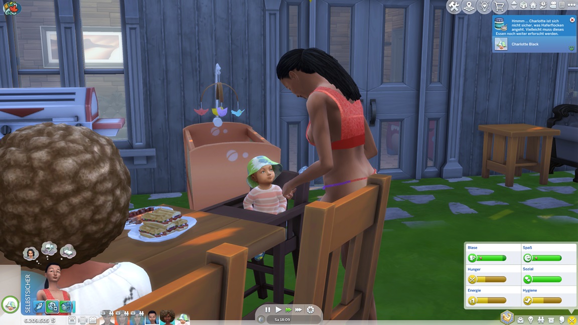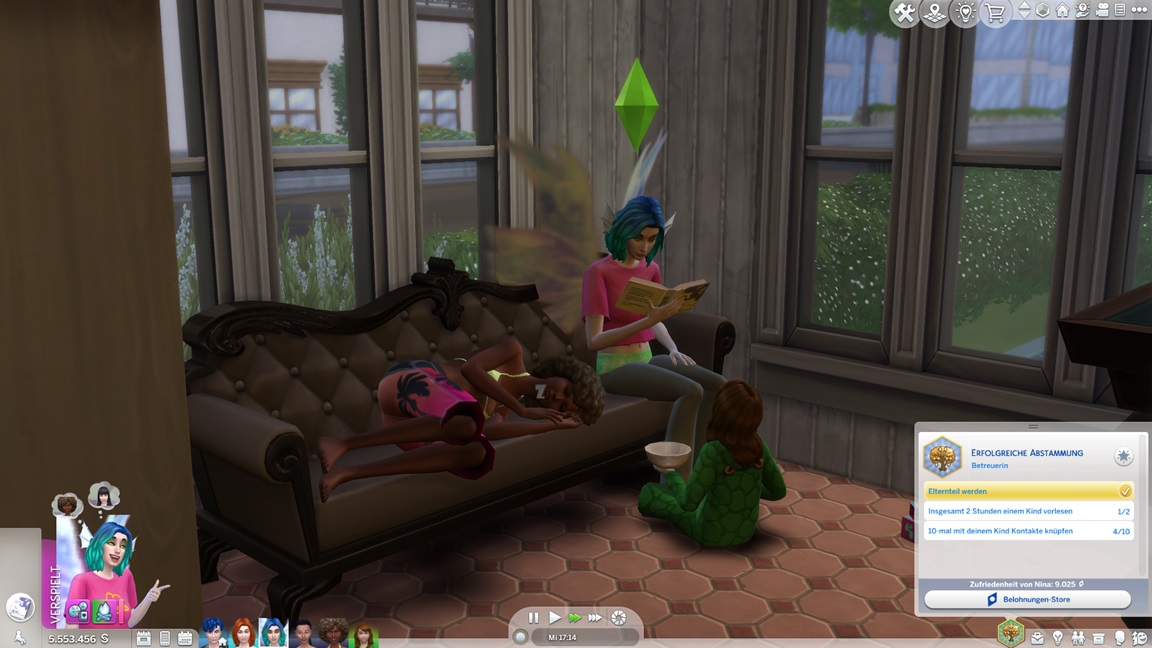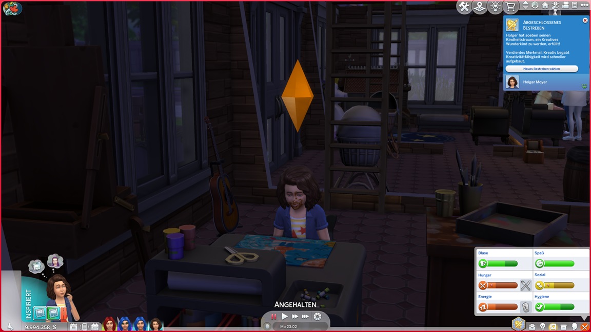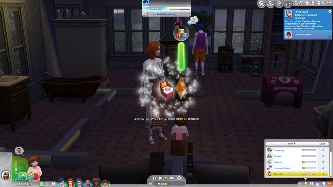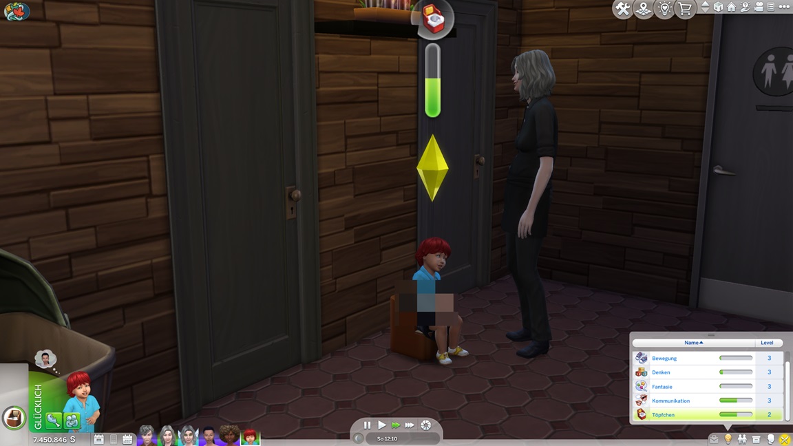 Ich stelle fest, dass ich mir in den Fuß schoss: Holger wächst noch während des Wochenendes, doch ich ließ ihn bereits seine Hausaufgaben absolvieren. Da werde ich per Konsole nachhelfen. Die Zwillingsschwestern tricksen derweil: Regina lebt ihre böse Seite aus, indem sie das Puppenhaus zerstört, woraufhin Victoria es wieder reparieren kann.