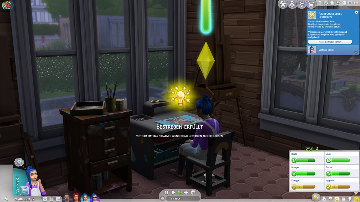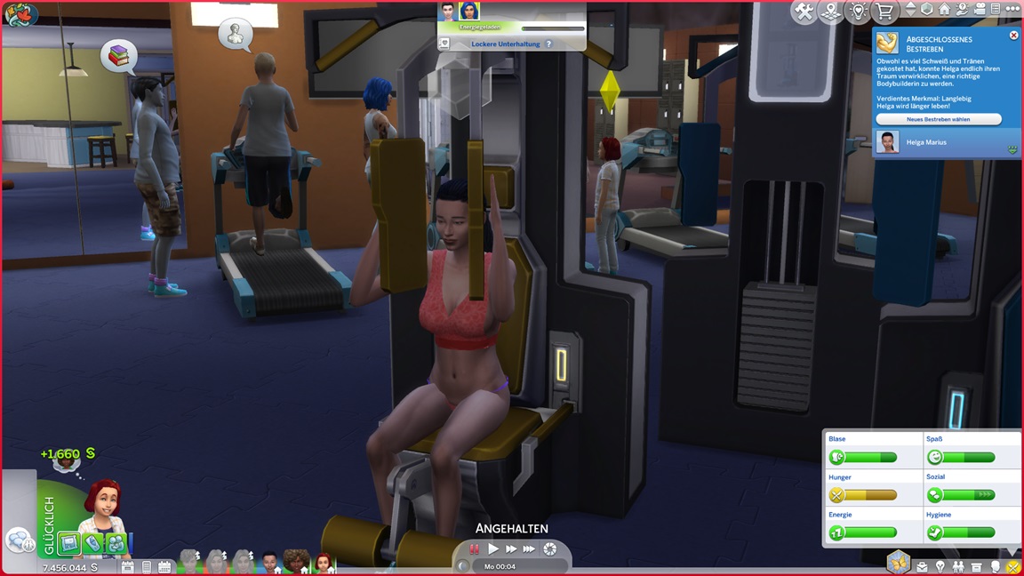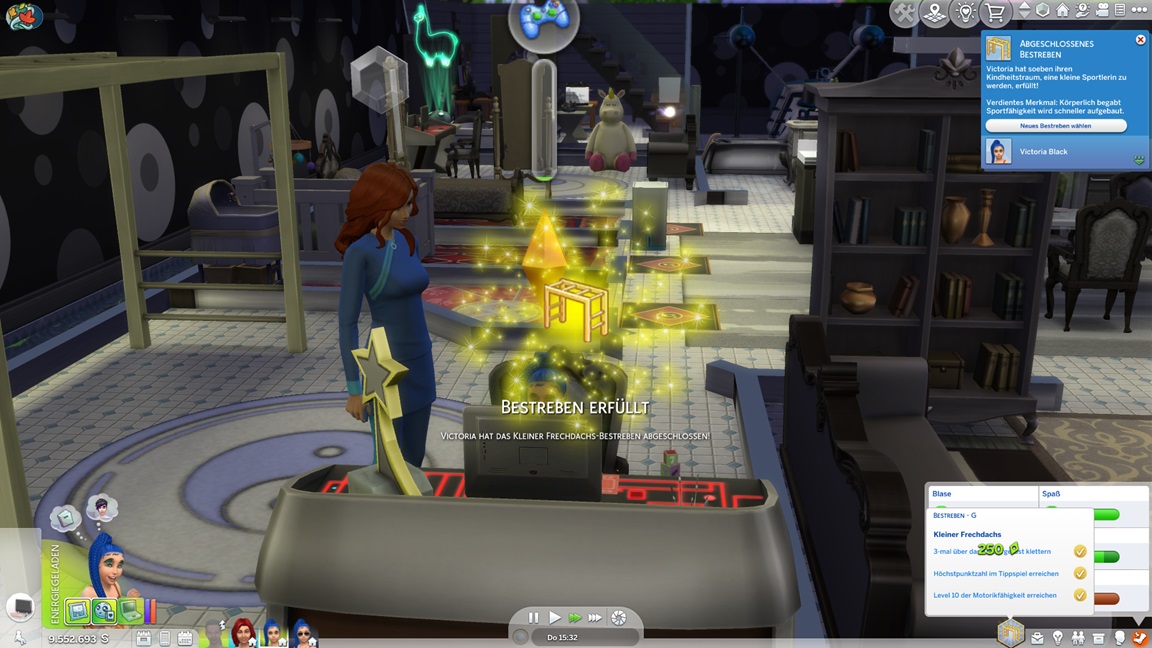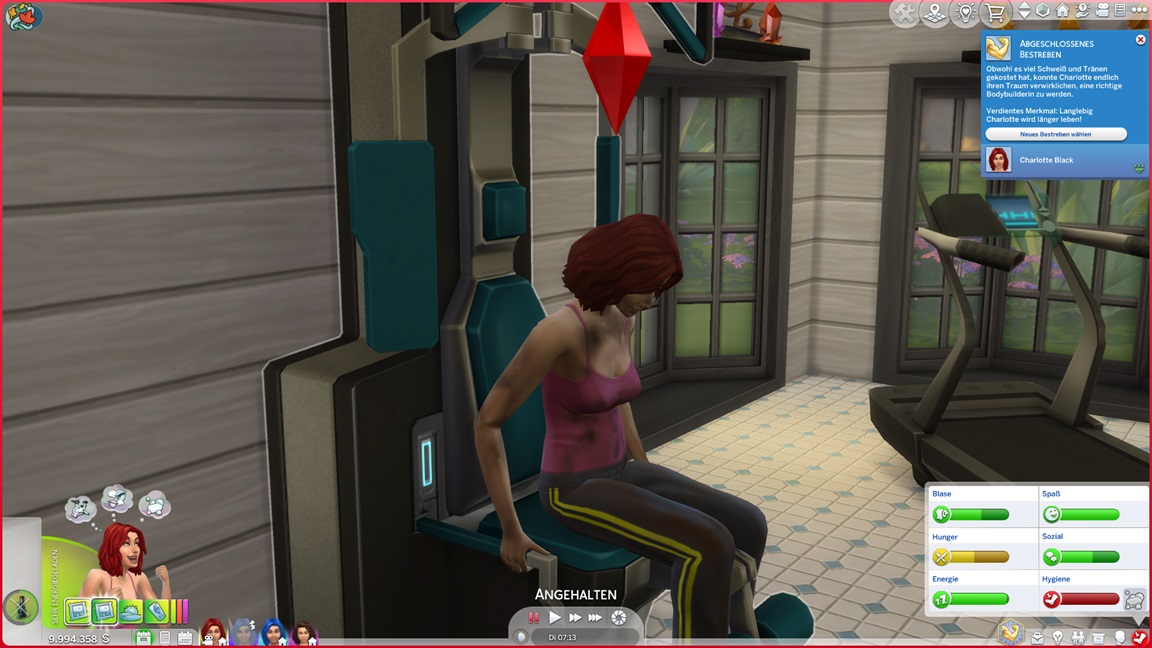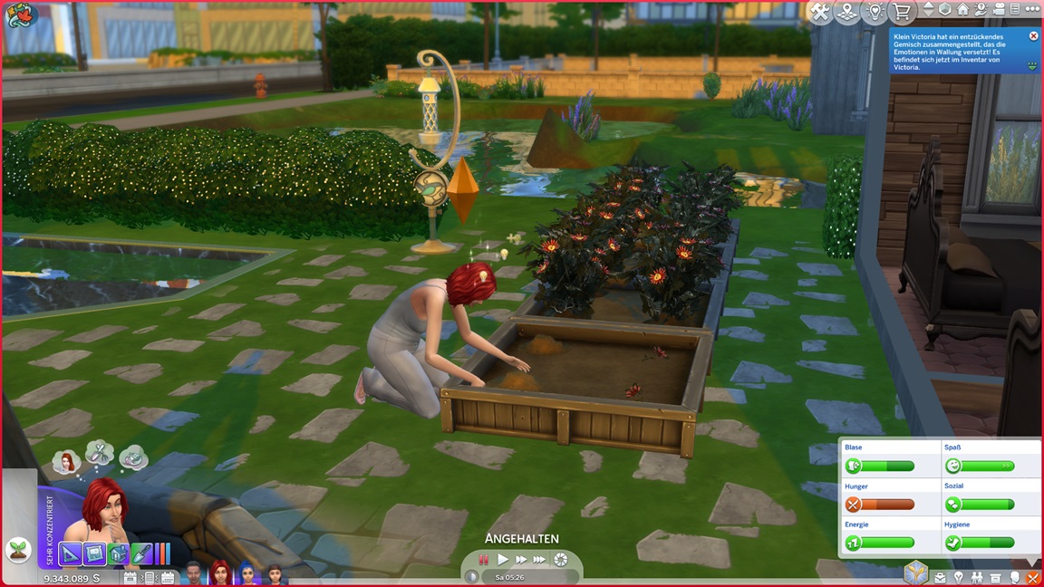 Da Victoria nur noch die Kuhpflanze fehlt, beendet sie ihr Bestreben im Baumodus. Auch sie wählt Sport.