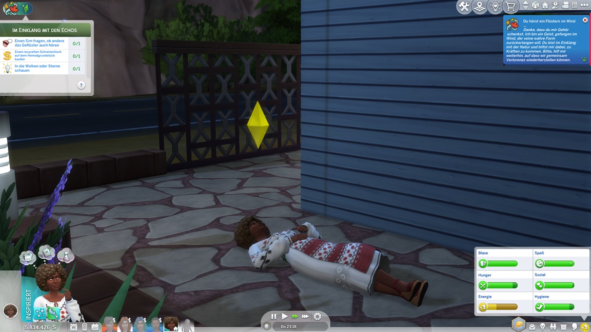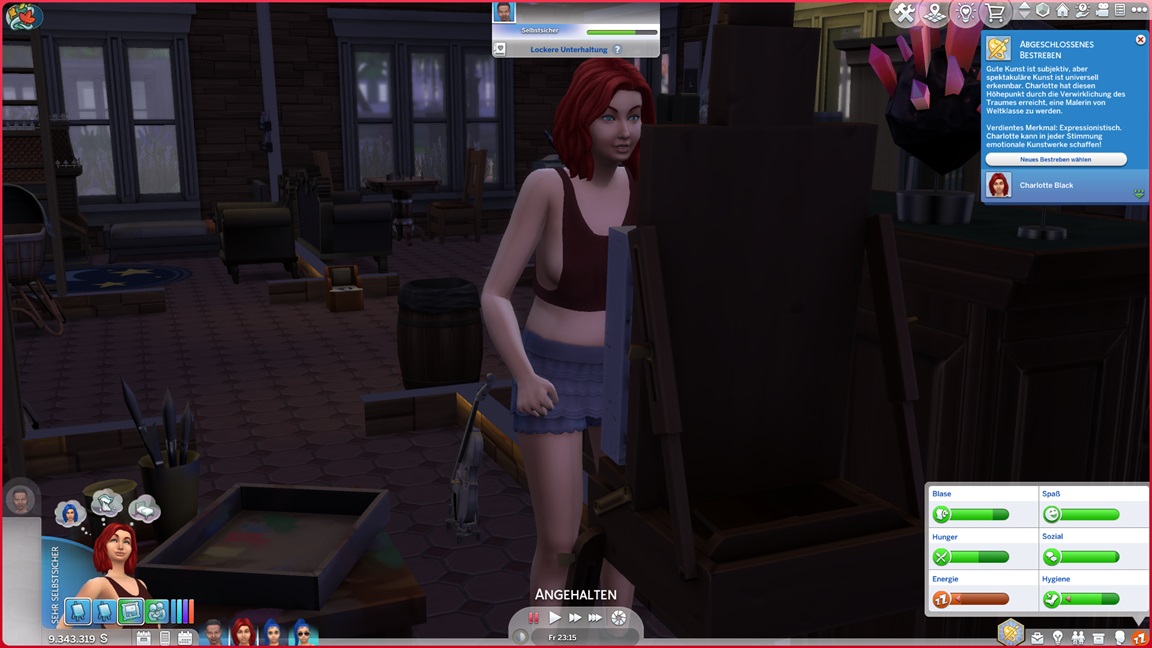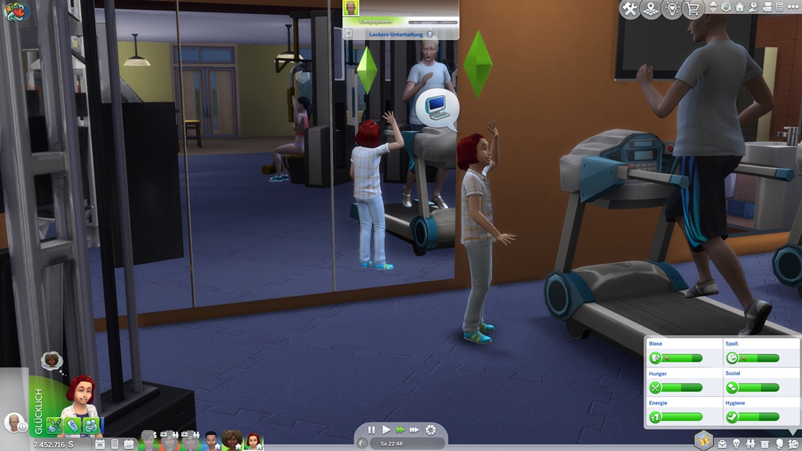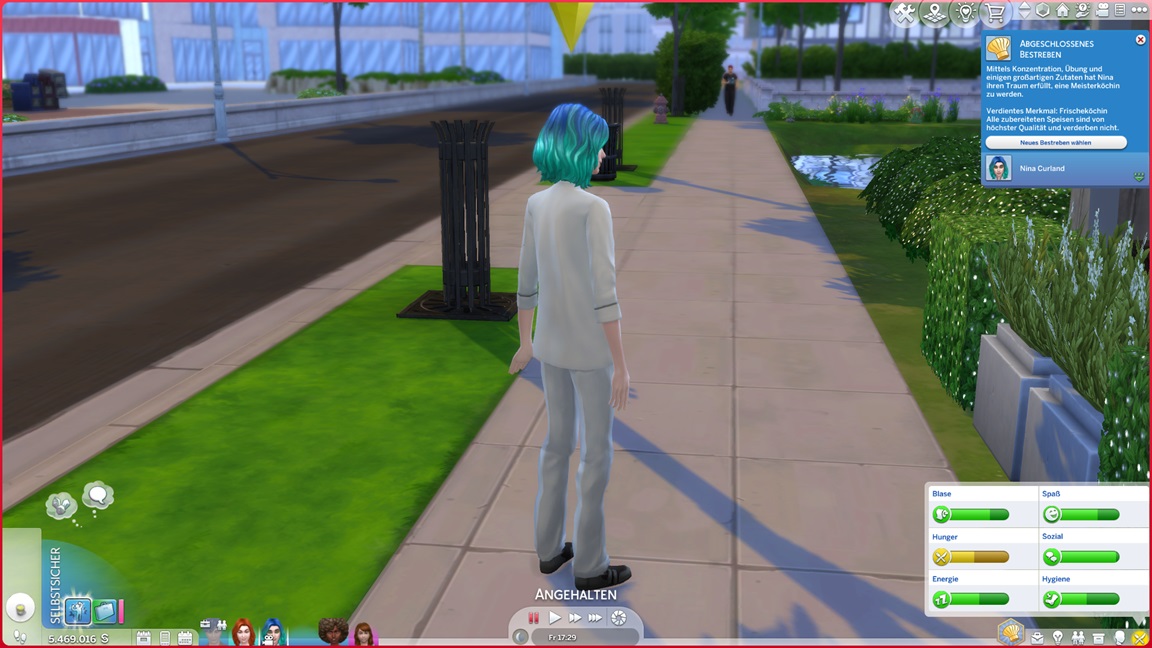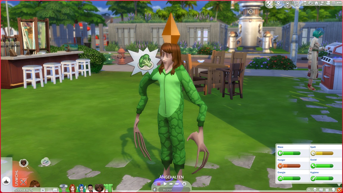 Da Victoria nur noch die Kuhpflanze fehlt, beendet sie ihr Bestreben im Baumodus. Auch sie wählt Sport.