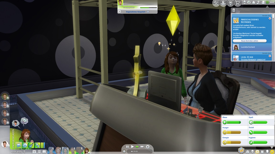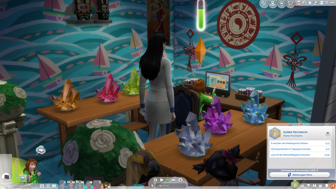 Lucretia kann nicht nur den Stimmungsraum nutzen, sondern sich auch beim Tastenkommandant-Teil in Videospielen unterrichten lassen. Sie wird zwar auf dem Weg zur Kletterstange zusammenbrechen, doch der Erfolg verkommt zur Formsache.