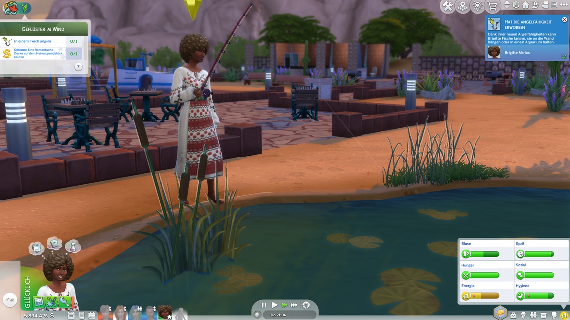 Nach etwas Zeit in der freien Natur verlangt die Questlinie nach einem Besuch im Park. Brigitte stellt direkt fest, dass sie Angeln mag.