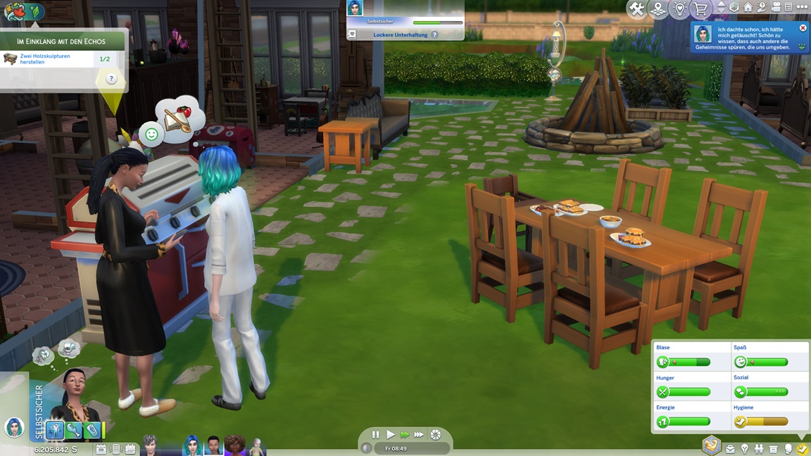 Holger stellt fest, dass er Heimwerken mag. Er produziert den Tisch nach neuem Rezept aus Recycling-Holz, der sich als länger erweist. Das schließt den Queststrang ab.