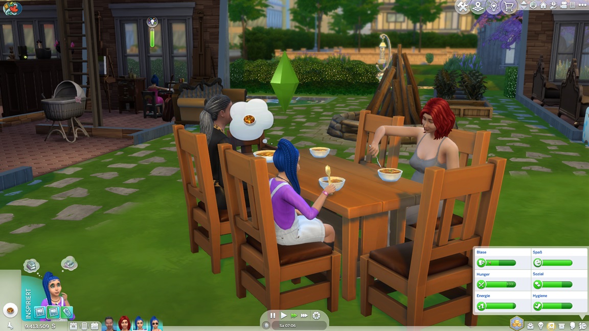 Helga stellt fest, dass sie Gartenarbeit mag. Es gibt einen Banketttisch, auf dem sich (gegen Geld) Gerichte herbeizaubern lassen. Leider befindet sich kein Kuchen unter der Auswahl.
