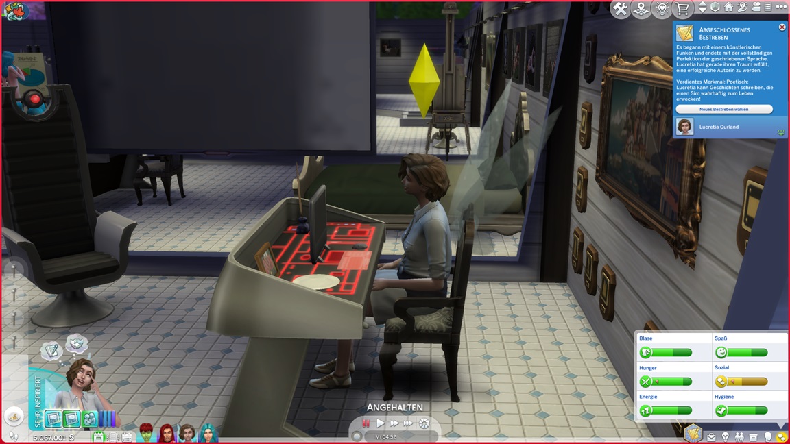 Er wünscht Wissen, kann aber auf der Axanar wenig machen, und springt zu sozial. Regina wird erneut von Konzentriert-Bonus ihrer dämlichen Eigenart geblockt. Victoria jubelt.