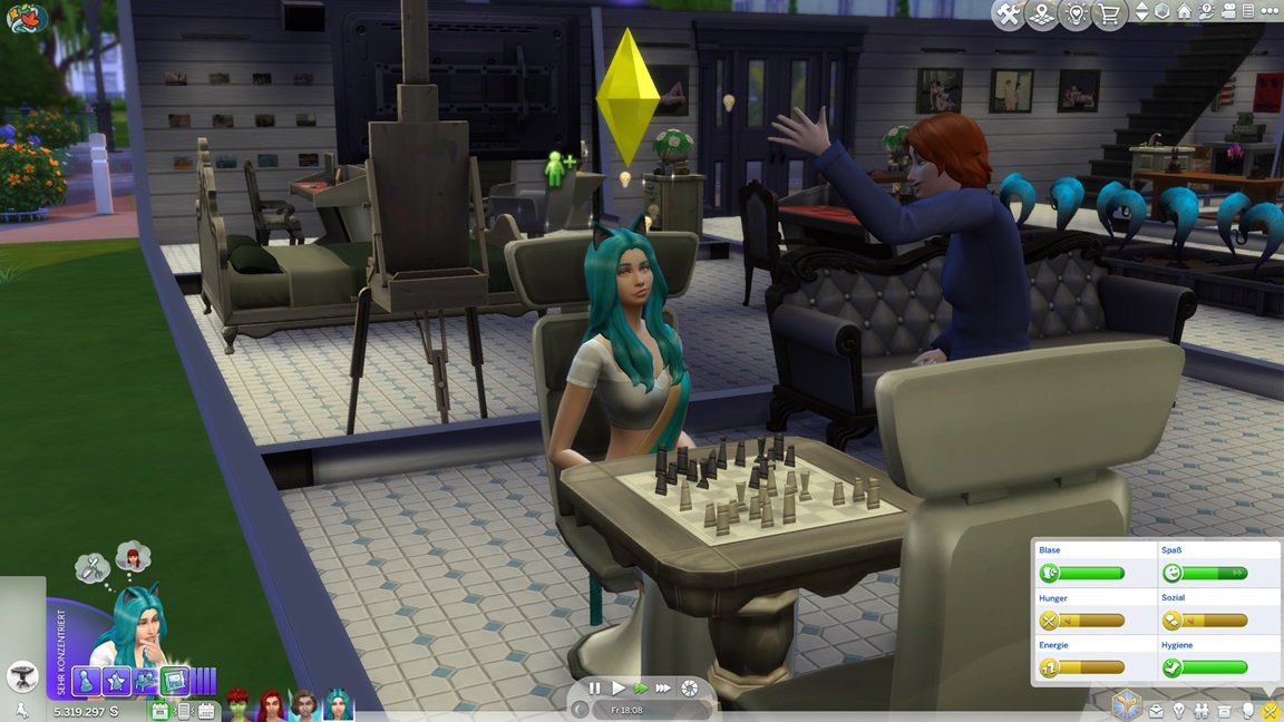 Thaleia erkennt ihre Liebe für Videospiele. Ava jubelt und fährt mit Musik fort.