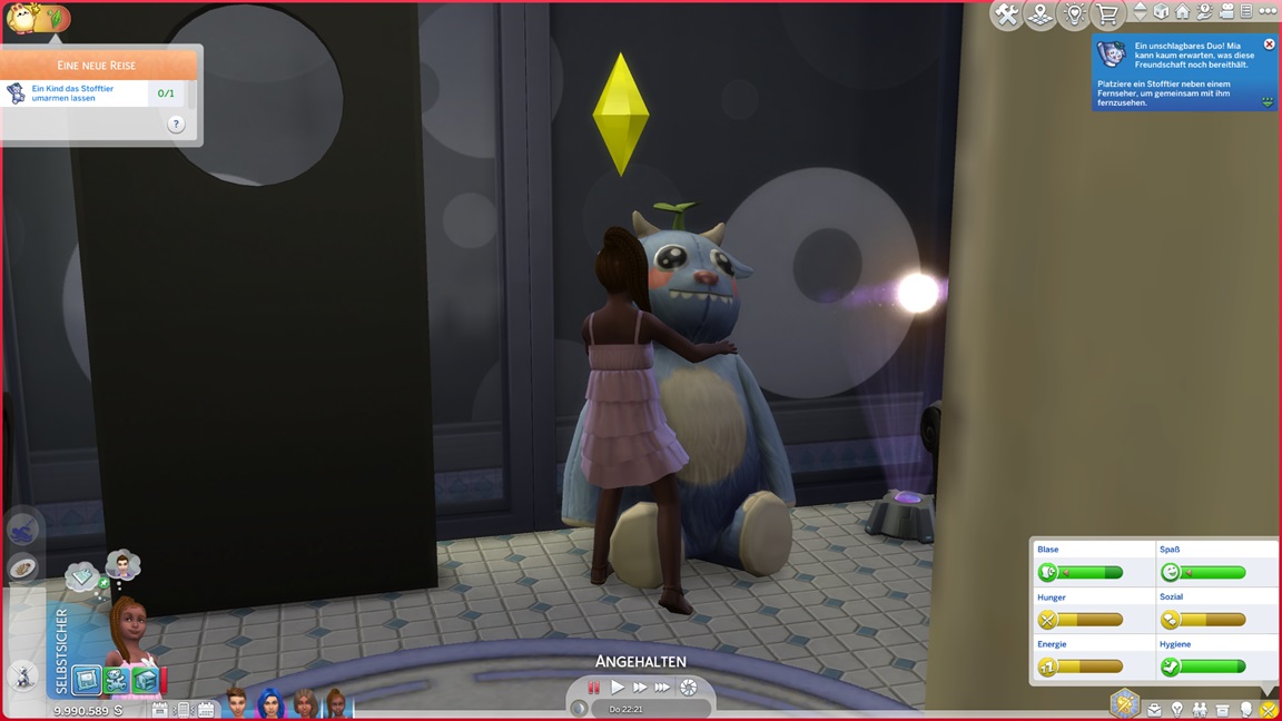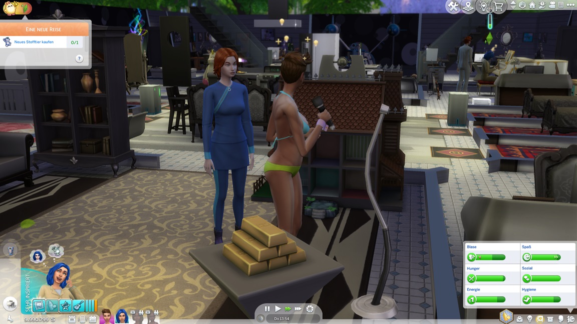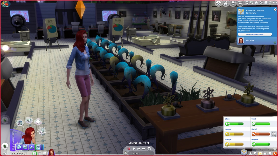 Mia stellt fest, dass sie Popmusik mag. Mit der neuen Stufe wartet eine neue Aufgabe auf Betty: Sie legt einen SimsHub-Kanal an und bittet Gäste um nackte Haut, wobei sie oft offene Türen einrennt.