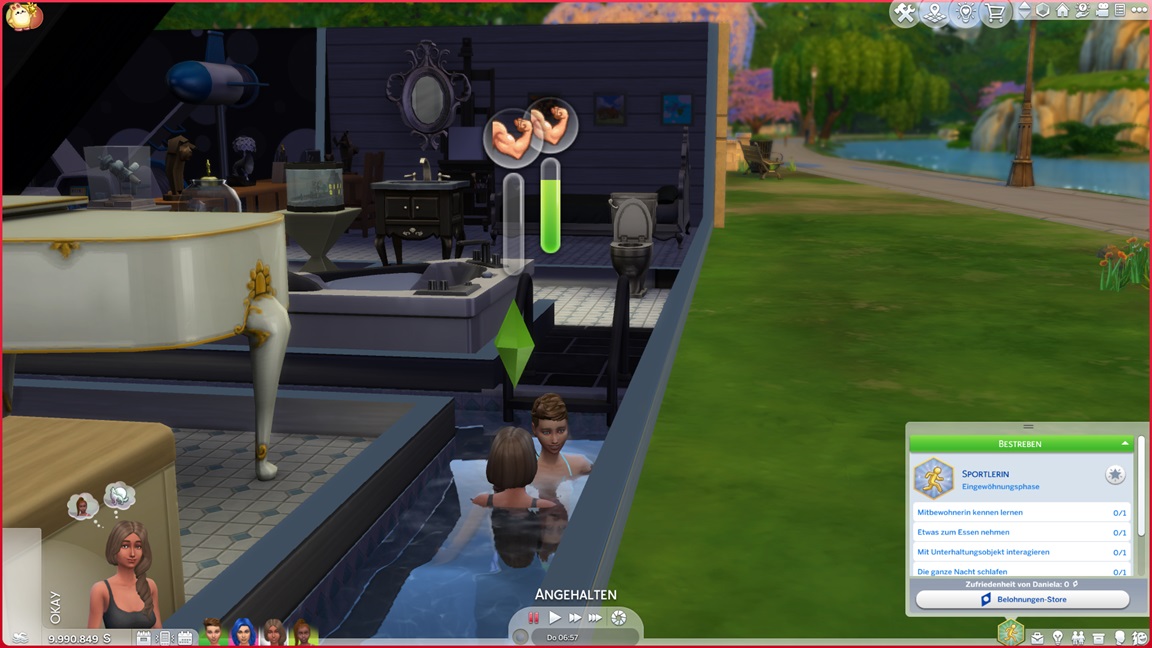 Als mir das Spiel beim Umgang mit Frederike zu viele Steine in den Weg läuft, jage ich sie vorschnell durch den Kuchen und füge den vollen Bonus per Konsole hinzu. Dann wiederhole ich es, als es mit Kleinkind direkt so weitergeht. Während nach dem Leon-Fehlschlag nun doch Betty und Daniela zu einem Date aufbrechen, präsentiert sich Frederike - bildhübsch, aber noch mit dem Schmutz der Säuglingsfütterungen, die mit dem nächsten Laden verschwinden wird.