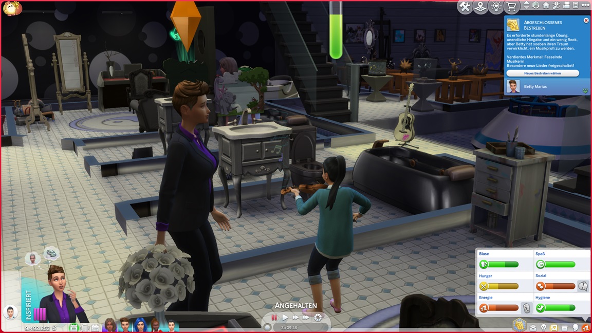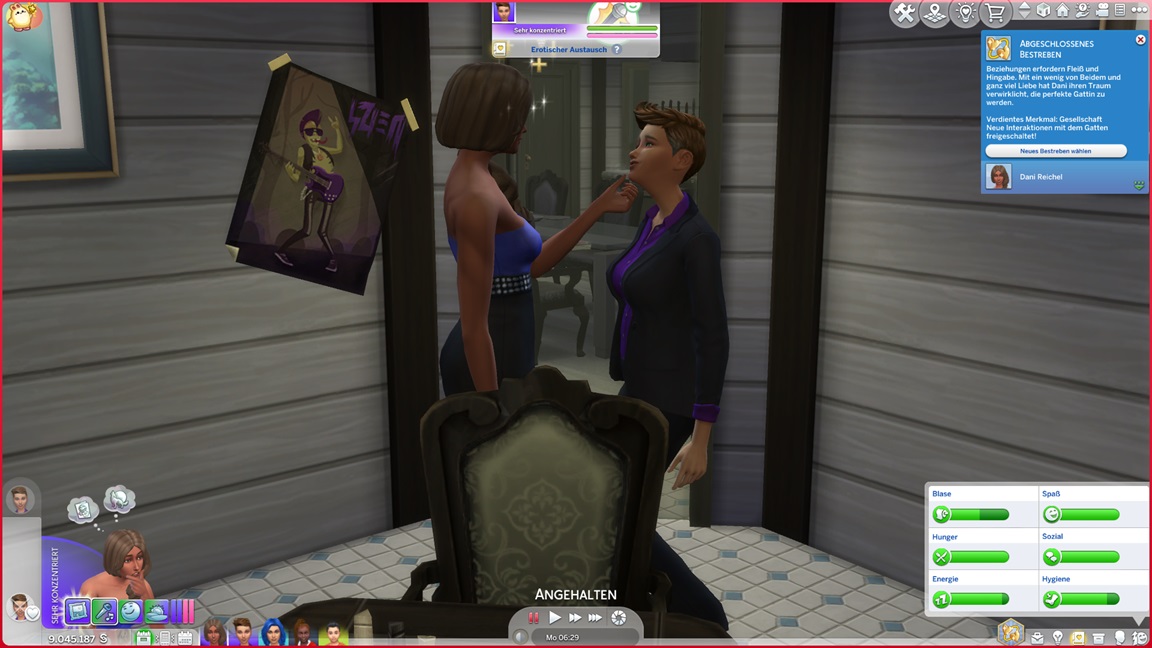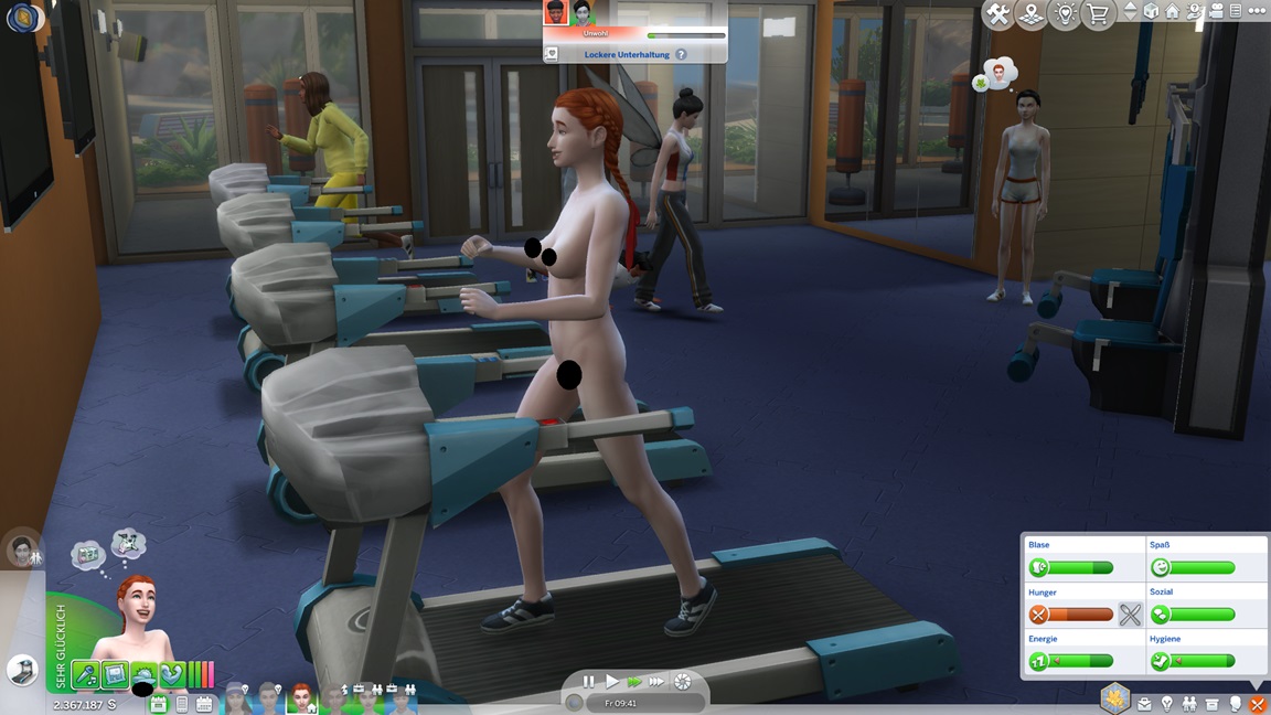 Adina setzt sich an die Familienbestrebung. Erin schloss diese ab, ist aber nach meiner inzwischen strengeren Definition nicht mehr ausgelevelt. Sie setzt sich an die Nudistenbestrebung. Das verlangt erst einmal, sich zu Hause unbekleidet wahrnehmen zu lassen.