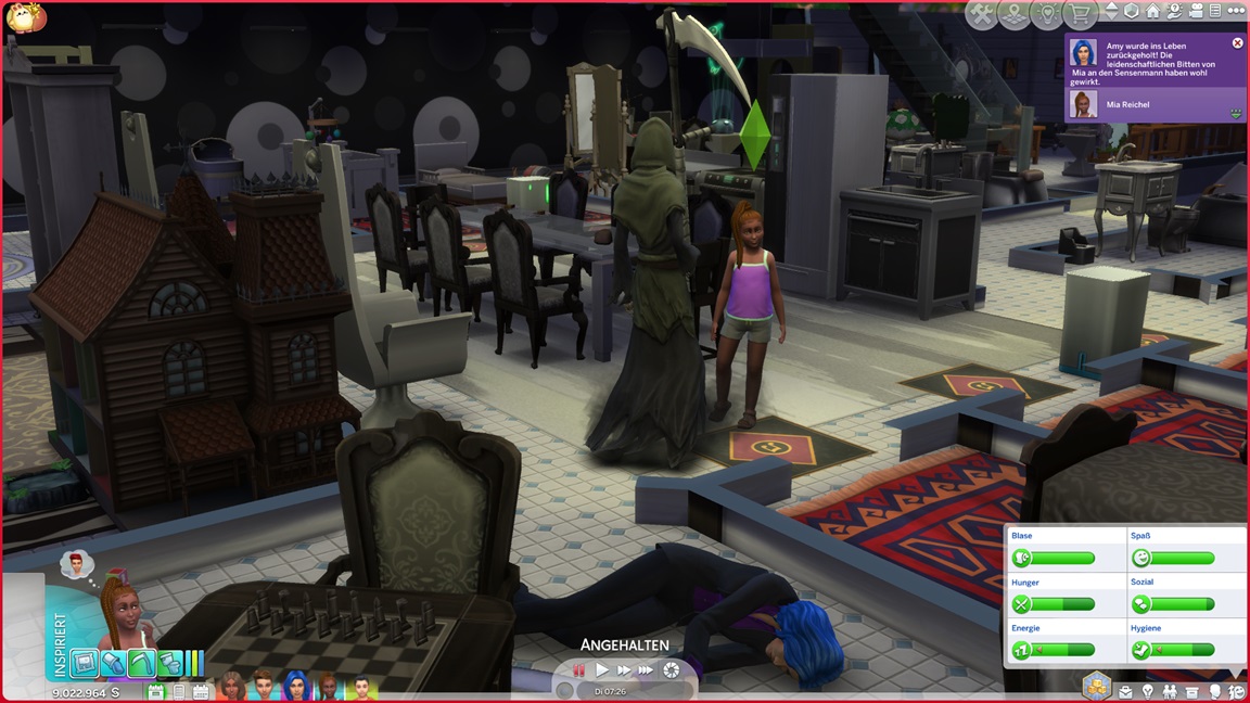 Da Mia nichts Besseres zu tun hat, setzt sie sich beim Sensenmann für sie ein... und es gelingt. Amy bleibt am Leben.