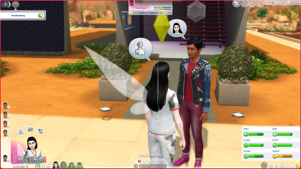 Da Jacqueline gerade als Kind existiert, möchte ich ihre Eltern hereinrotieren lassen, damit diese sich in ihren Familienbestrebungen ein paar Haken abholen können. Hier zeigt sich allerdings der Nachteil des neuen Systems: Jacquelines Eltern, wer war das nur? Also außer Adina?