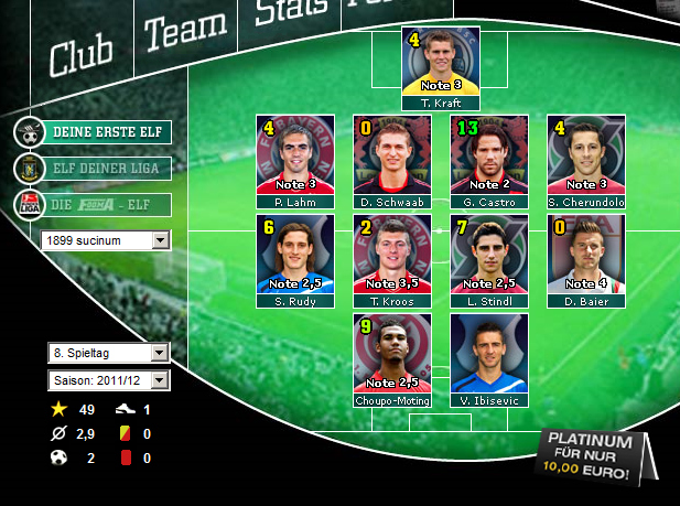 Sucinum hat ja gesagt, er hat gezielt auf gute Noten gesetzt und dafür in Kauf genommen, dass ein Teil seiner Mannschaft nicht punktet. Ich hatte durchaus zielstrebig auf Stürmer gesetzt, und mir frühzeitig gleich mehrere Spieler gesichert, die möglicherweise ihren Durchbruch schaffen könnten. Shechter und Pekhart waren ja beides Neuzugänge. Pekhart hat sich auch gelohnt, und ist von 1,7 Mio. Einkaufspreis auf 3 Mio. gestiegen.
