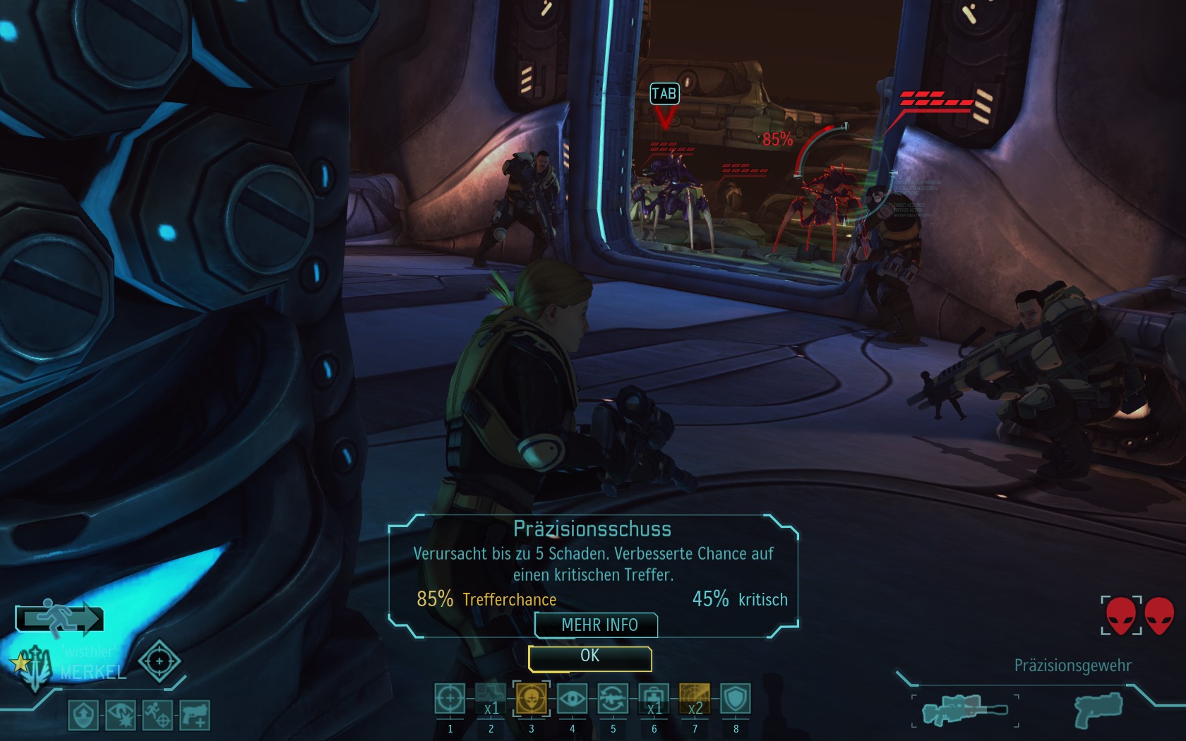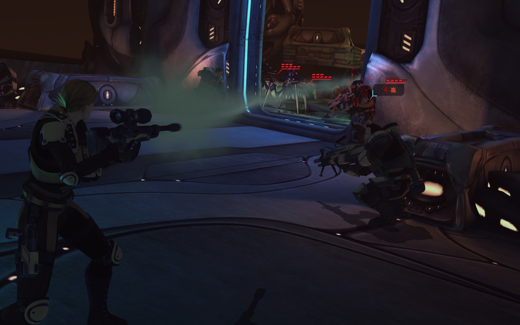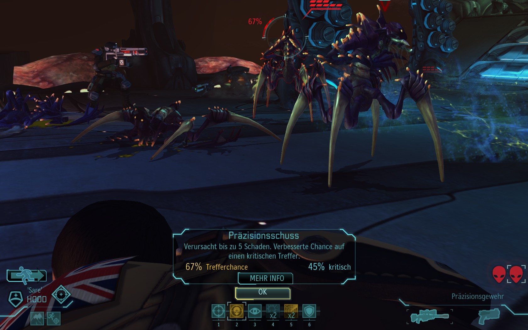 Sare geht vor und die 3 kommen sofort angelaufen (ohne den Sektoiden):