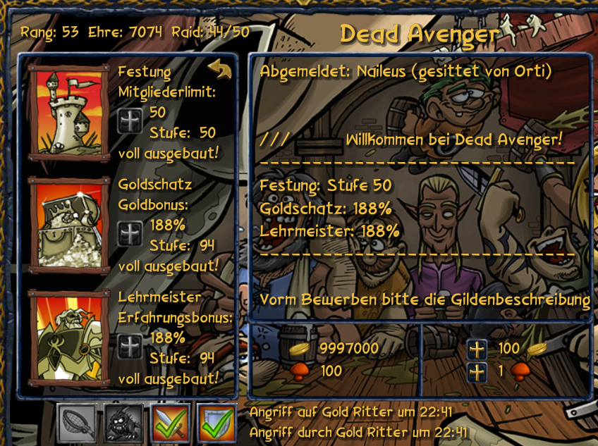 Komm doch zu uns in die Gilde (haben in den letzten 5 Tagen 10 mal Raid gemacht und gewonnen! :eek Gold und Erfahrung +180 % !!! :eek)