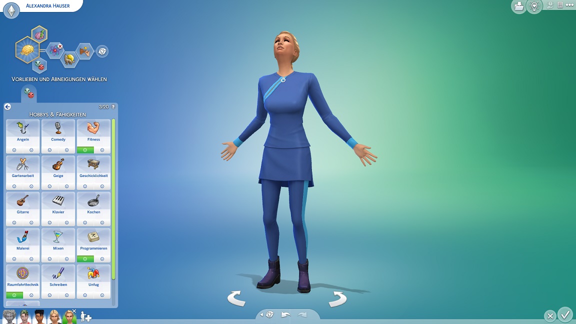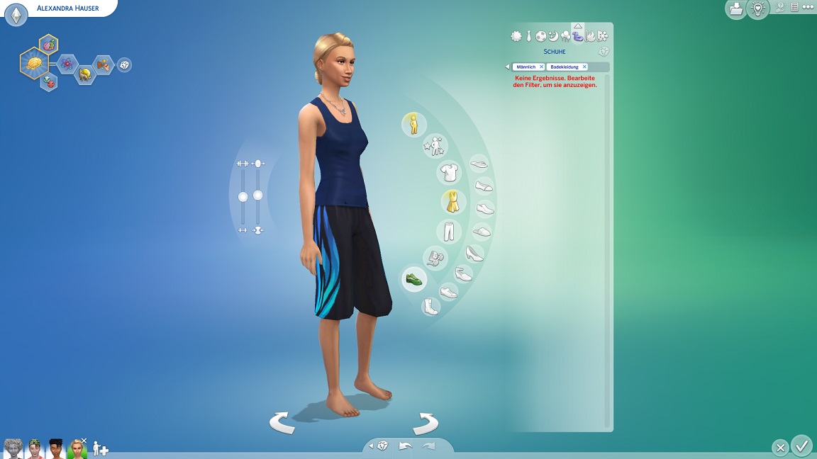 (Bei PflanzenSims scheinen die Haare, die sich auch je nach Wohlbefinden verändern, als Kleidung zu zählen. Artjom hatte kurz vorher noch mehr.)
