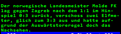 Leverkusen dafür ohne das nötige Quentchen Glück, tapfer gekämpft aber das wars nu wohl, genauso wie für die anderen Deutschen Mannschaften...