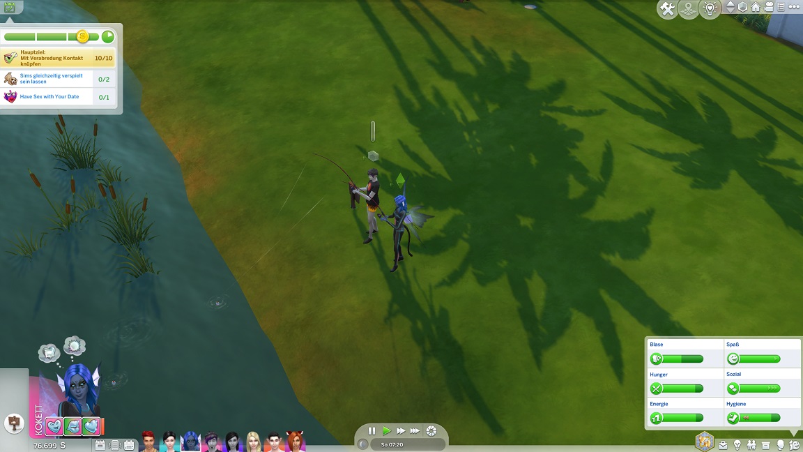 Ich verhindere, dass sie einander an die Wäsche gehen, und lasse es lieber (aufgrund der Denkblasen) beim Angeln enden.