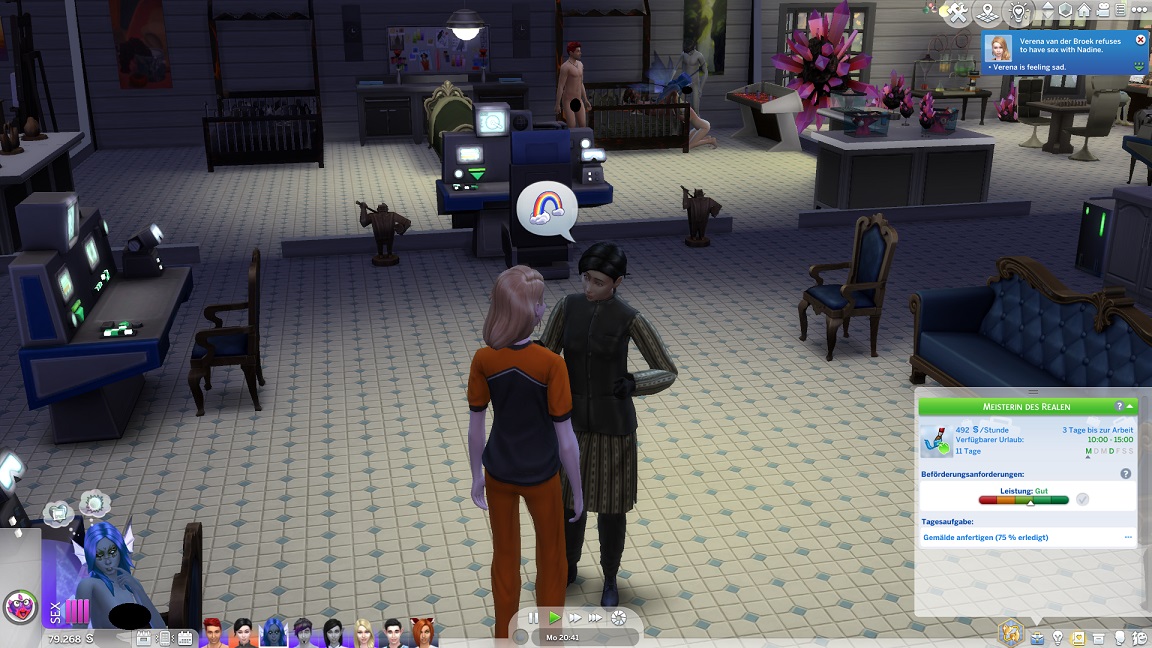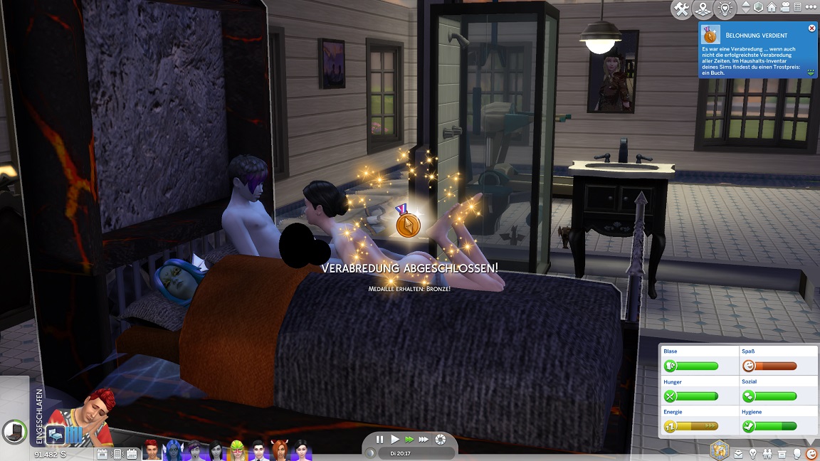 Der (erweiterte) Tag endet mit einem unerwarteten Achievement, als Lisa ihren Arbeitsfrust abbaut