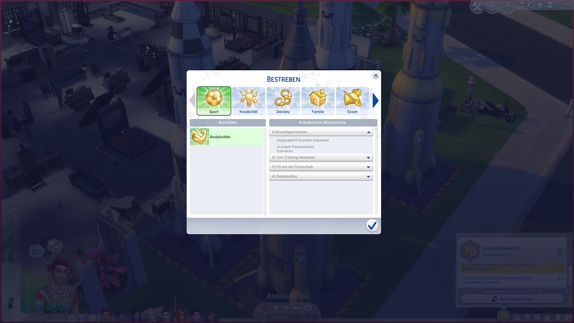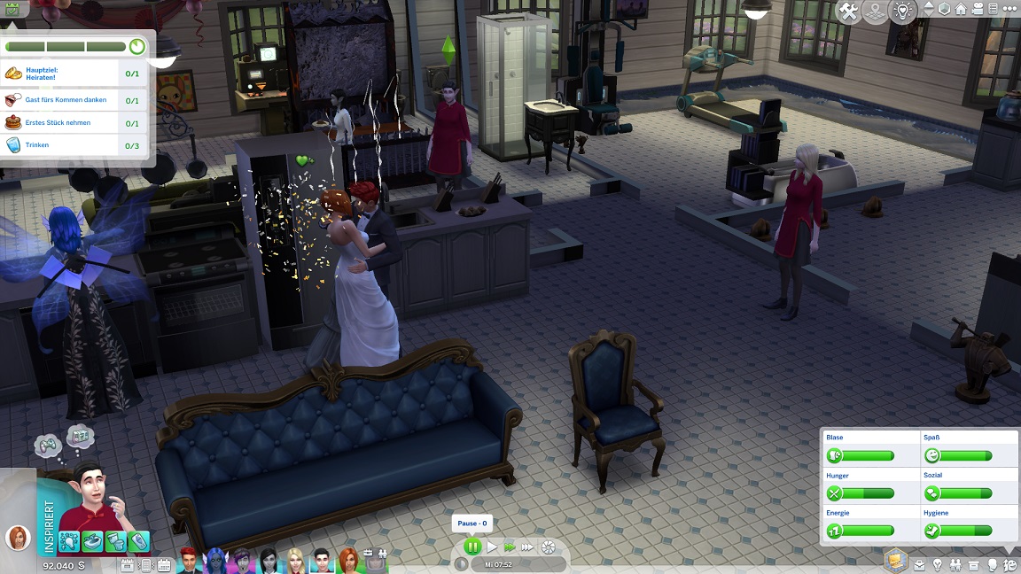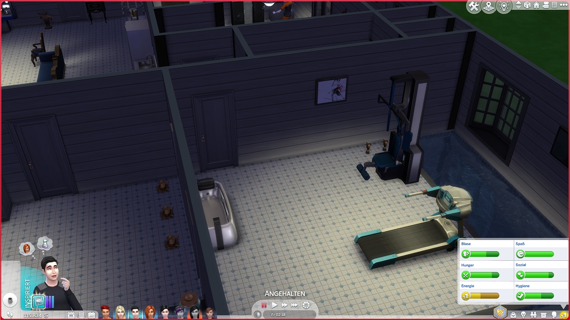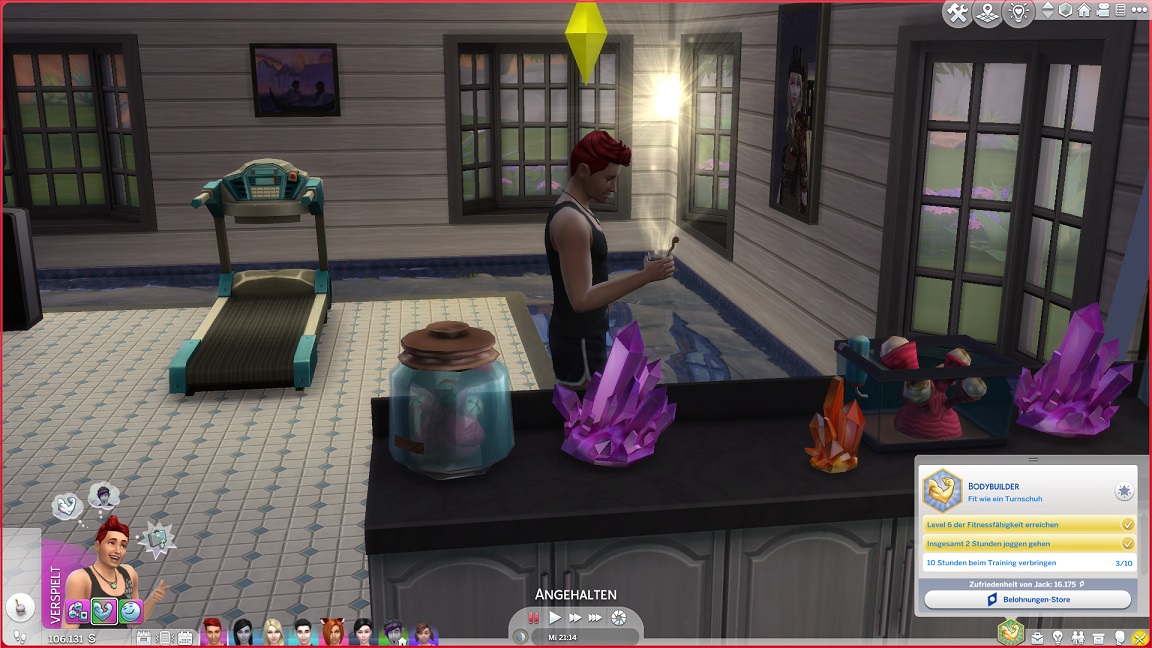 Erst bei der Rückkehr bemerkt das Spiel, dass er auch die benötigten beiden Fitnessgeräte besitzt.