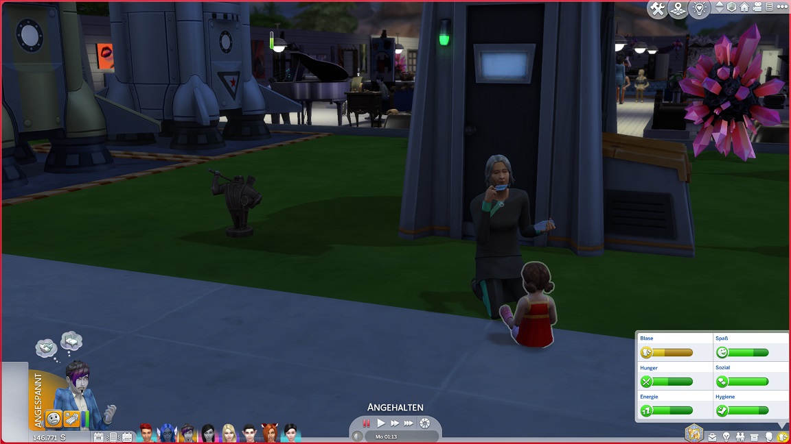 ... Ein Gastauftritt von ihm in dieser Geschichte wäre aus vielerlei Gründen eine dämliche Idee, nicht zuletzt weil ich einen mittelalterlichen Fantasy-Charakter nicht überzeugend als Fremdkörper umsetzen kann. Ein Sims-Charakter besitzt stets ein Handy und spielt im Zweifelsfall damit herum.