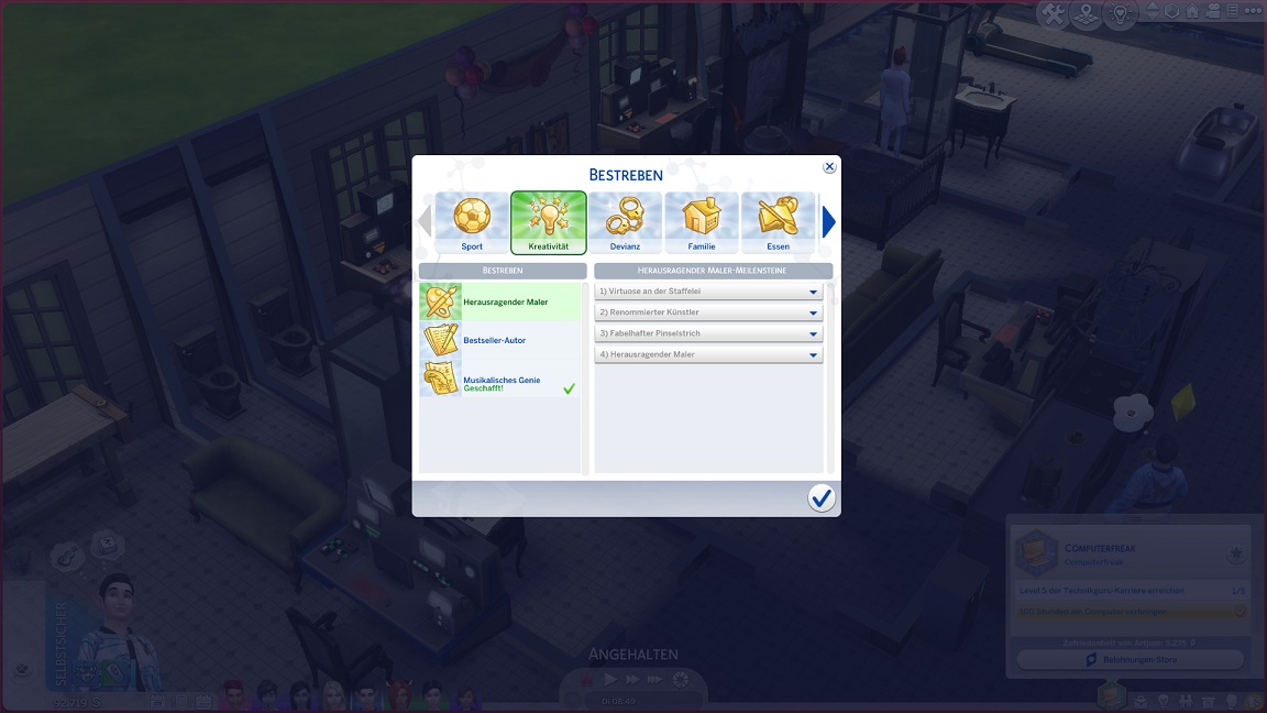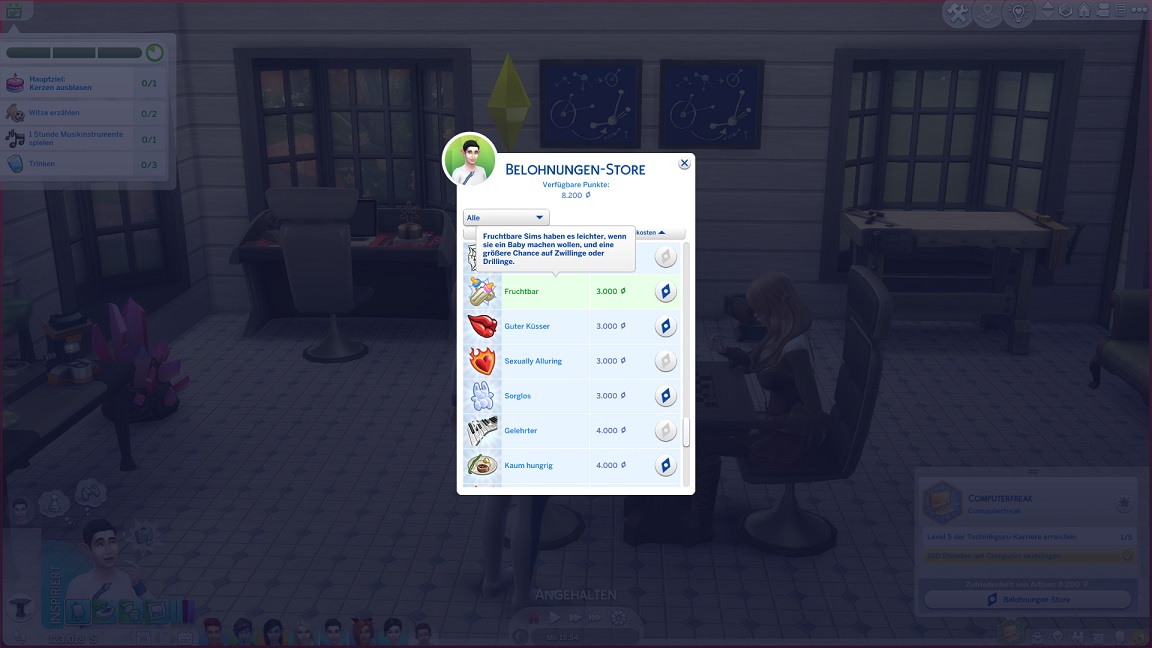 Ihre Bestrebung verlangt aber auch Fähigkeitenpumperei, die Marie vor dem Computer erledigt.