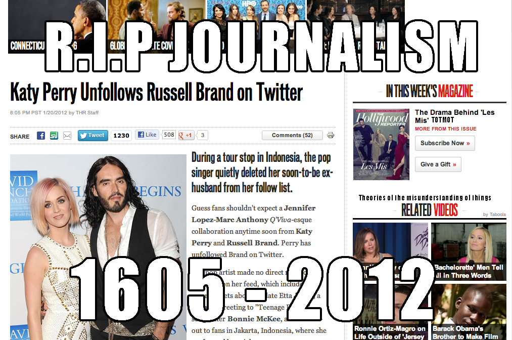 Wo Infotainment und Emotionalisierungszwang die Oberhand gewinnen, stirbt der wahre Journalismus. Er ruhe in Unfrieden.