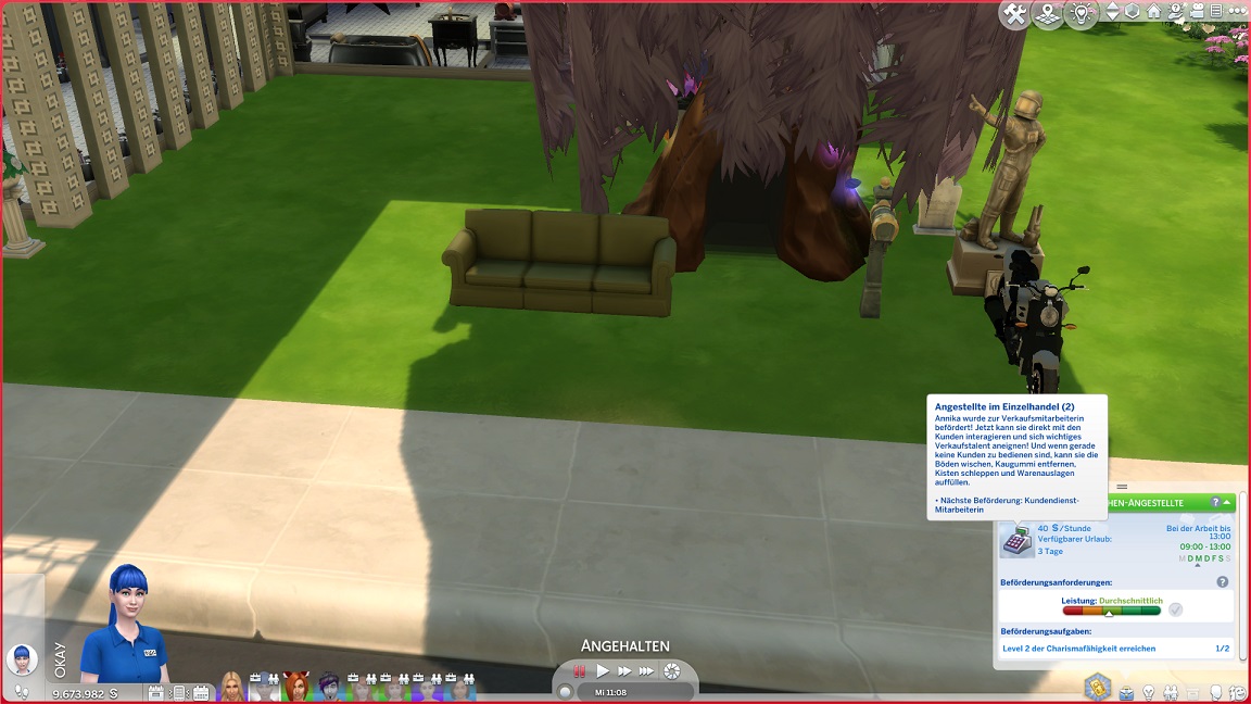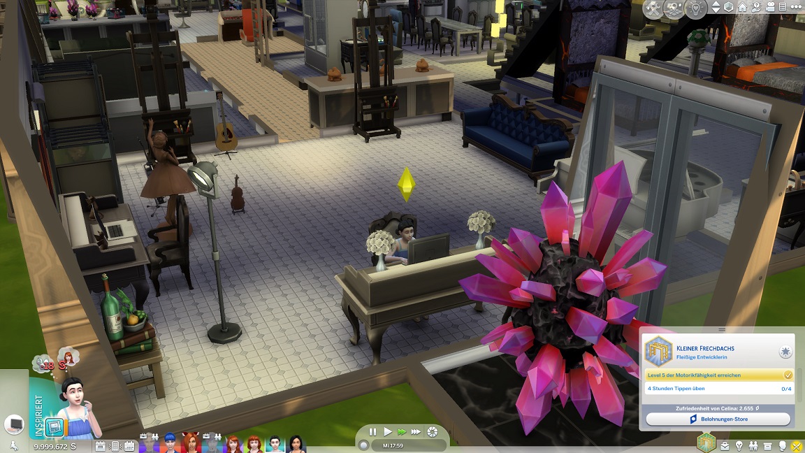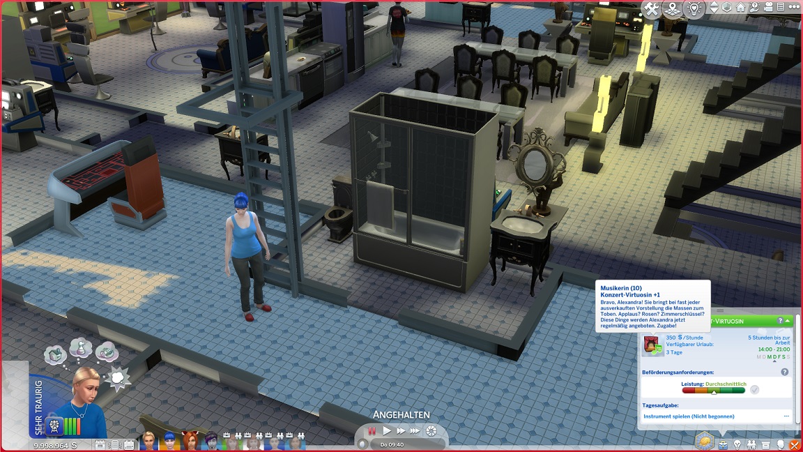 Ich zeigte dies noch gar nicht in Großaufnahme: Dank der zufälligen Natur der KI-Jobzuteilungen befindet sich Lexi bereits auf der höchsten Stufe ihrer Karriere - und gibt die Star-Musikerin, ohne auch nur ein einziges Instrument spielen zu können.