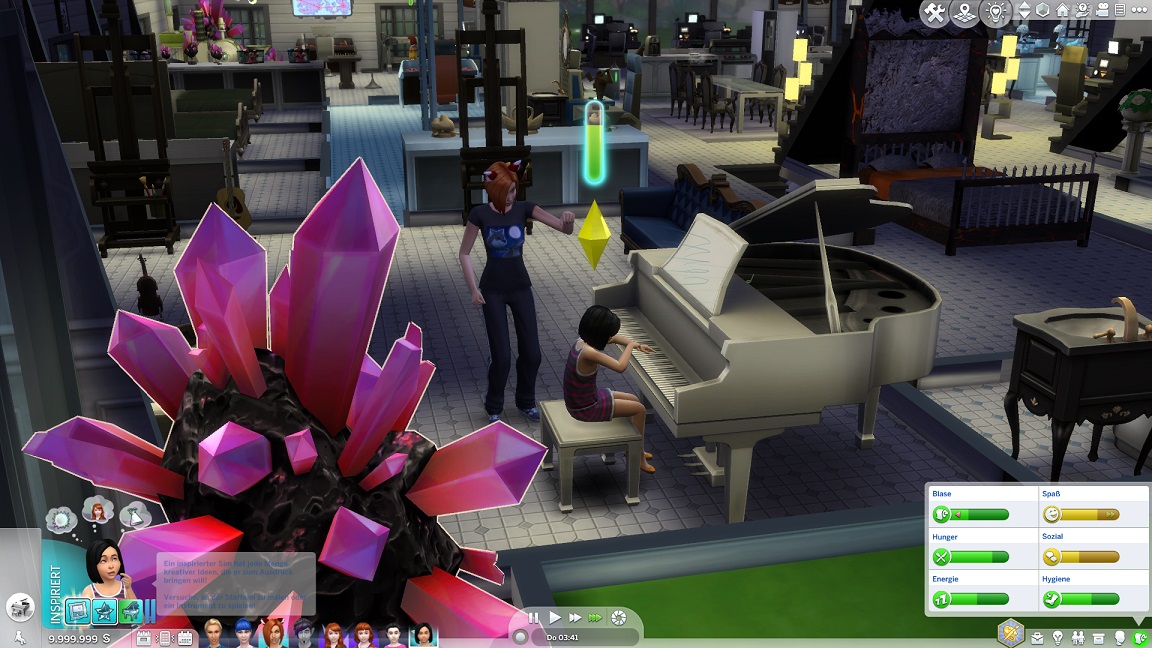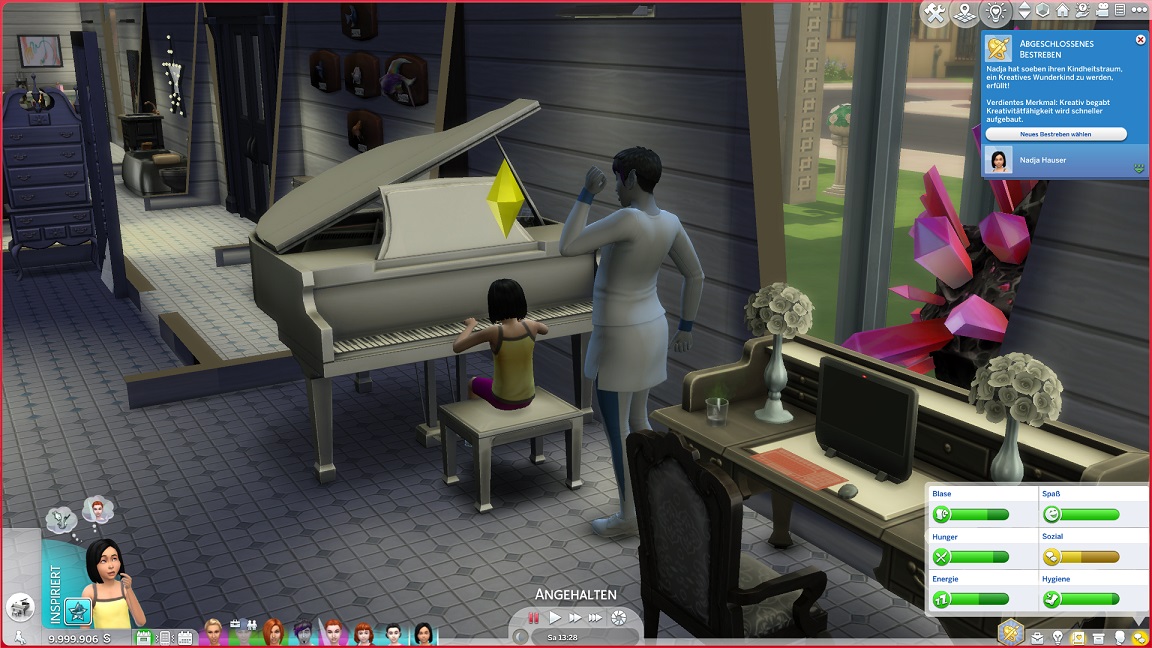 Sie muss ebenfalls pumpen und wählt für die Kreativität das Klavier. Dabei kann sie nämlich unterstützt werden.