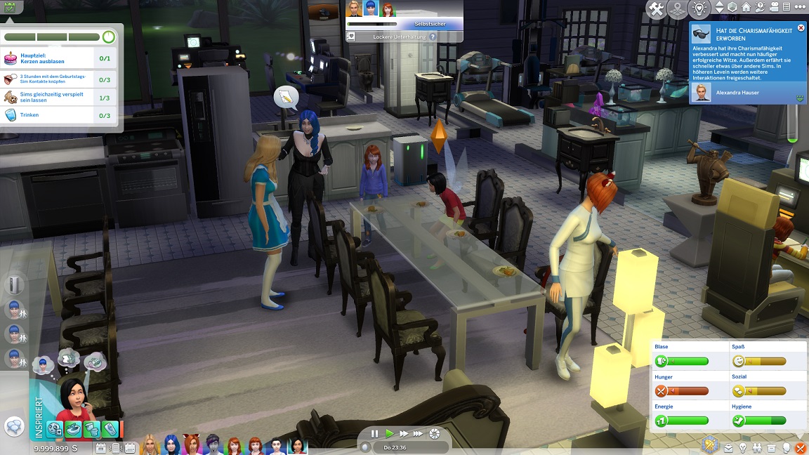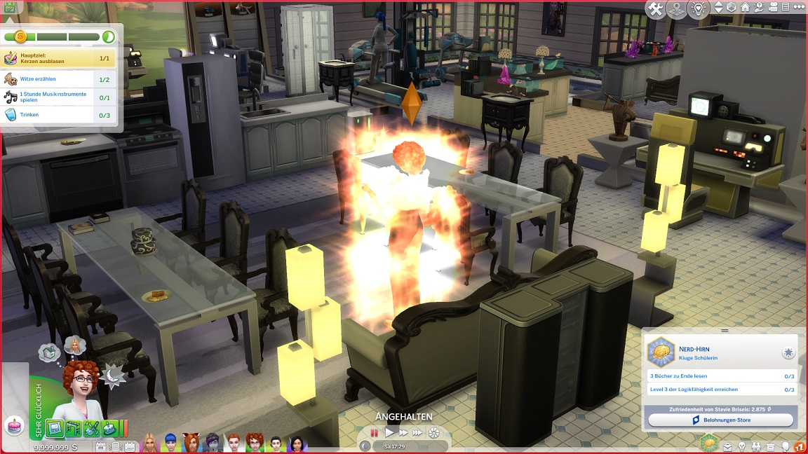 Celina begann das Spiel als „Geek“ und fügt jetzt noch „Vegetarisch“ hinzu. Sie schloss die intellektuelle, musische und motorische Bestrebung ab… und ihre Eigenarten müsste ich nachschlagen.