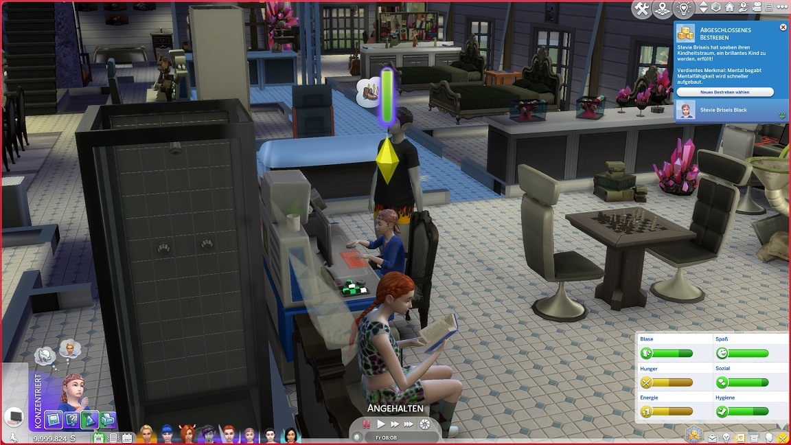 Andromedas ältere Zwillingstochter fügt ihrer Eigenschaft „Gut“ noch per Zufallsgenerator „Aktiv“ hinzu, erfüllte die wissenschaftliche Kinder-Bestrebung und mag gegenwärtig Videospiele. Sie entschließt sich dazu, eine Stelle als Computertechnikerin anzustreben, was ihr die blaue Uniform der kombinierten Abteilung Wissenschaft+Technik verpasst, und sie entscheidet sich für die Bestrebung „Computerhirn“, auch wenn ich mich zuerst verhaspele und ihr Schritte auf dem Technikerfeld verpasse.