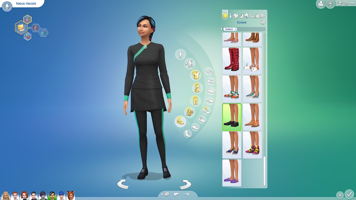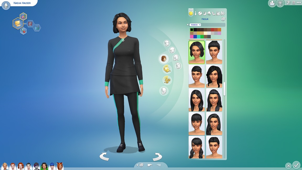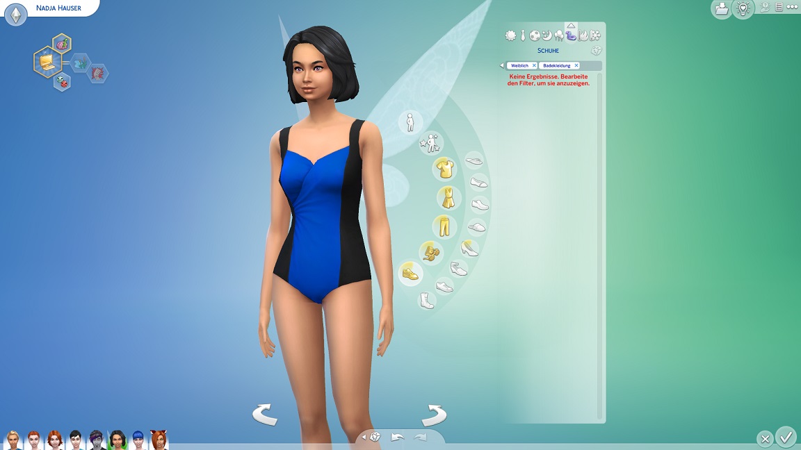 Ich bessere auch Nadjas Schwimmanzug nach: Tatsächlich vertat ich mich bei den Uniformfarben, und sich in eine fremde Abteilung einzubinden erscheint mir unpassend für sie. Da schwarz auf schwarz den Effekt ruiniert, greift sie stattdessen ebenfalls zu Blau, unter dem ihr Nebenfach zu finden sein könnte.