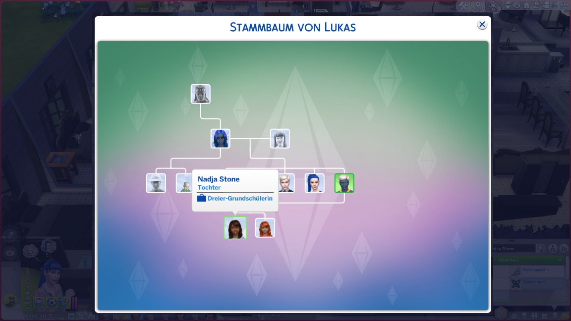 Nadja begann das Spiel „naturverliebt“ und fügt nun „selbstsicher“ hinzu. Sie schloss den motorischen und den musischen Zweig ab.