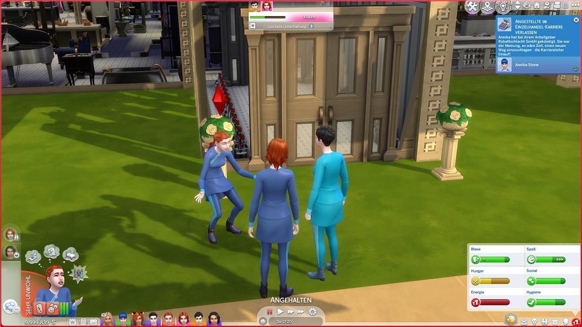James schließt seine Agentenkarriere ab, und ich lasse ihn auf Sportler wechseln, damit er als Bodybuilder neue Optionen freischalten kann. Dasselbe gilt für Andromeda, nur dass sie sich wie einstmals ihr Captain in die Welt der Mode vorwagt.