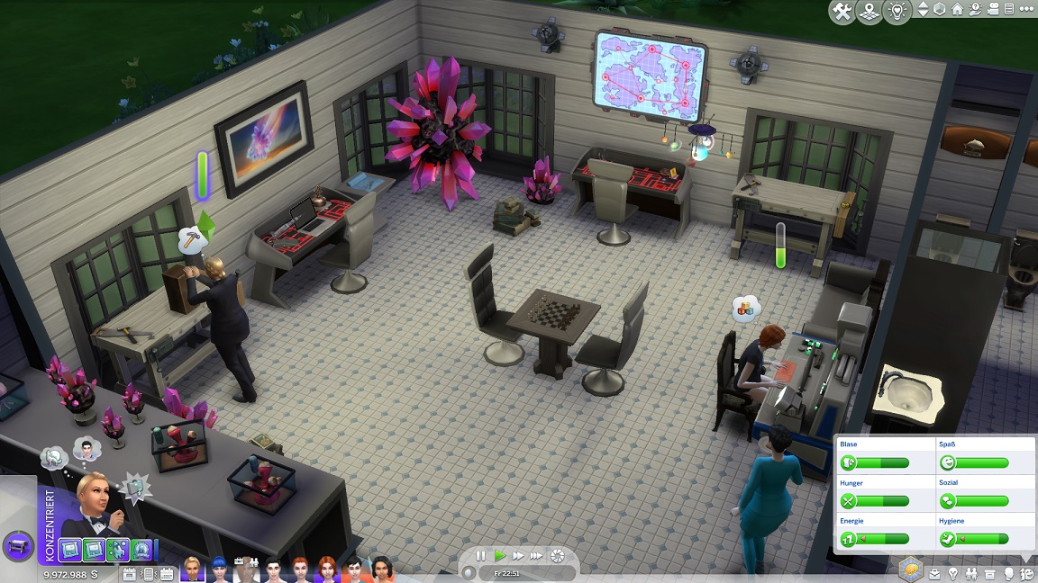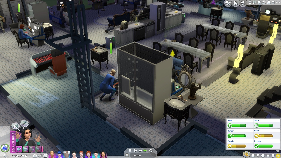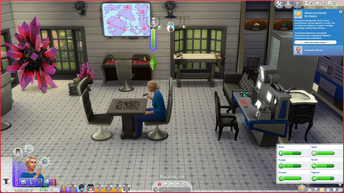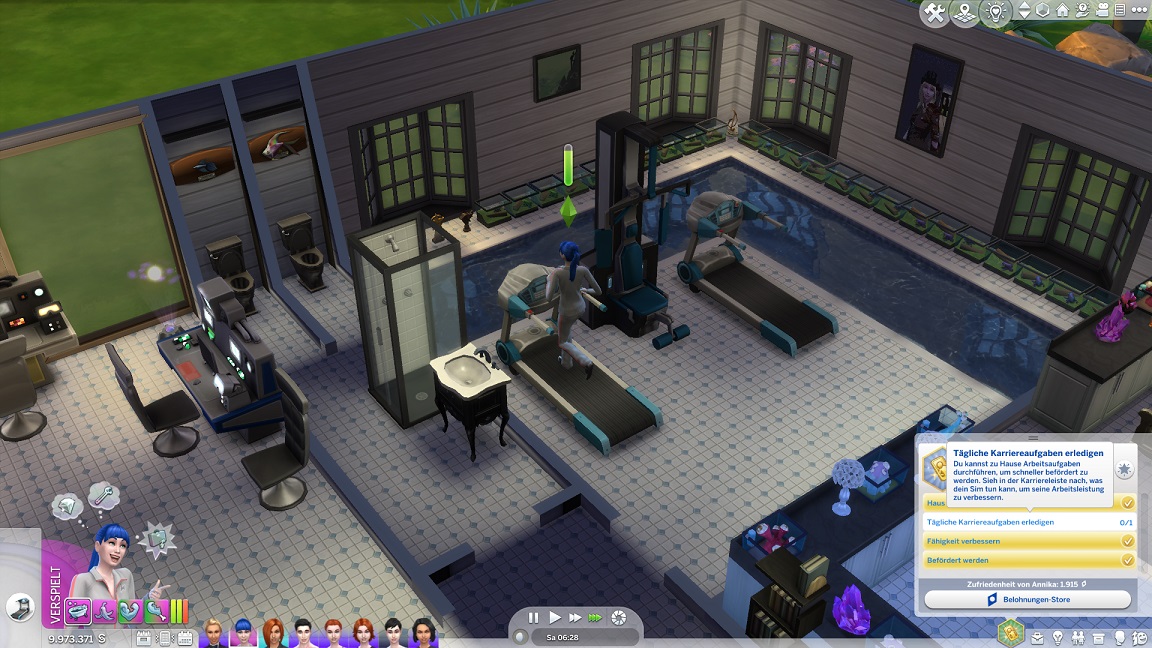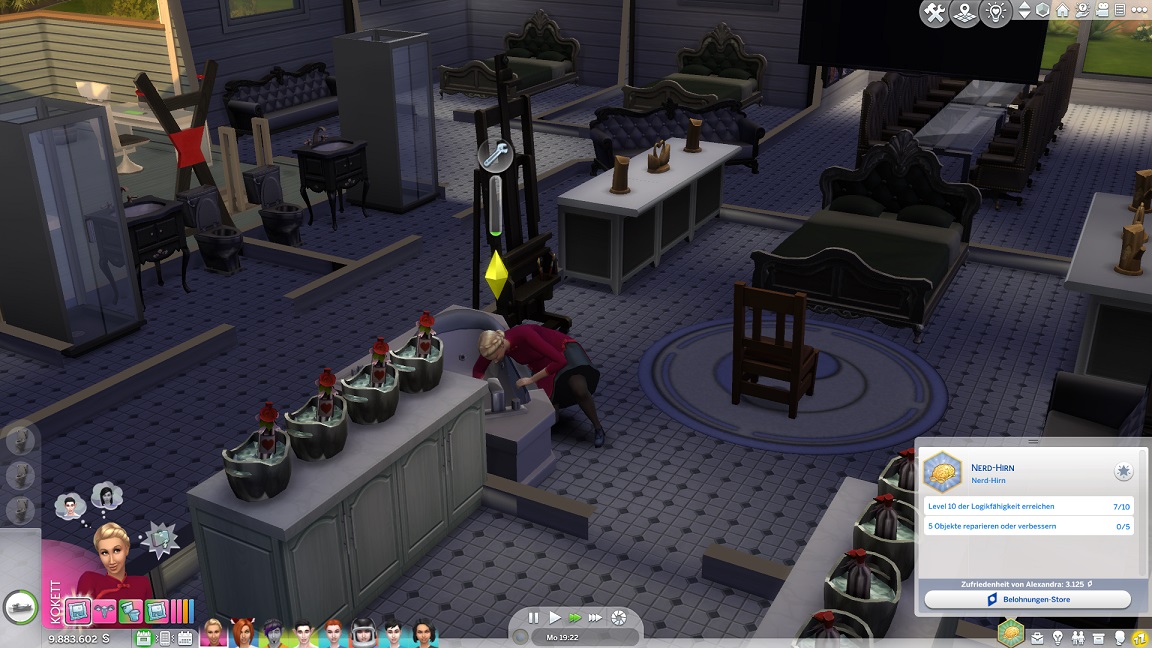 Lexi muss fünf Geräte verbessern oder reparieren und stellt dabei fest, dass ich nicht nur eine Stufe des Whirlpools, sondern auch eine ganze Toilette im Erdgeschoss übersah. Ein Icon zeigt mit dem Patch auch an, welche Fertigkeiten gerade eine Aufwertung erfahren.